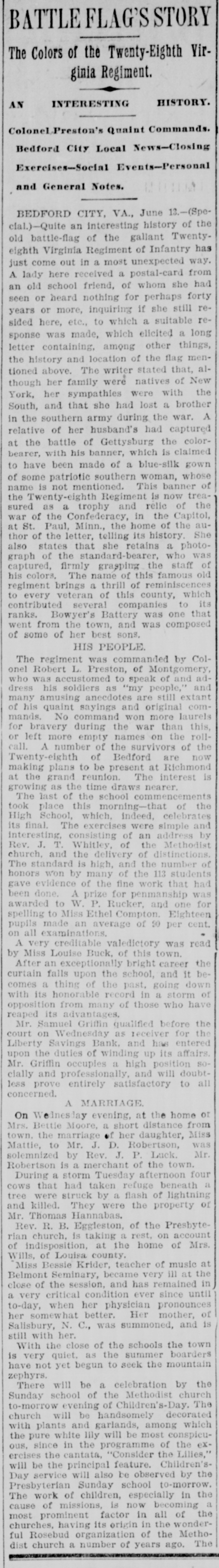 The pilgrimages to the summit of the sharp top, Peak of Otter, are of daily occurrence, and despite the fatigue of the trip, the breathlessness of the climb from the "tying place," and the soreness from the exercise of muscles that are rarely used in ordinary locomotion, the tourists are amply répaid for it all by the uncomparable panorama that is spread out before them, embracing portions of thirty-two counties. Among the parties that have made the trip this week, a very charming one was composed of Misses Irene Ellube and Mary Cobb, of Greensboro', Ala.; Mrs. C. L. Mosby and Miss Minnie Nichols, with Messrs. Allen Cucullu, W. B. Dunn, Preston Parr, Jr., and Ellward Burks.