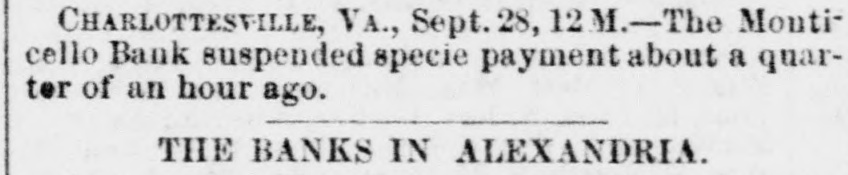 CHARLOTTESVILLE, Va., Sept. 28, 12M.-The Month cello Bank suspended specie payment about a quarter of an hour ago. THE BANKS IN ALEXANDRIA.