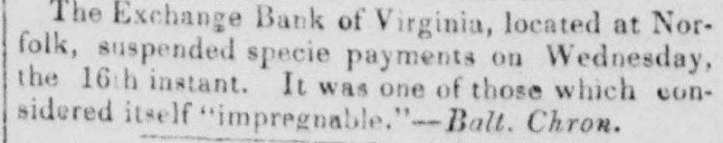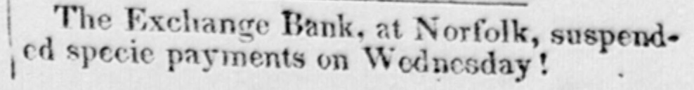 The Exchange Bank, at Norfolk, suspended specie payments on Wednesday!
