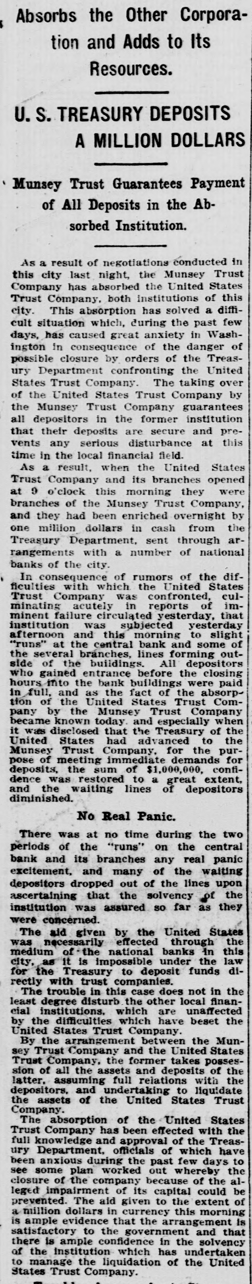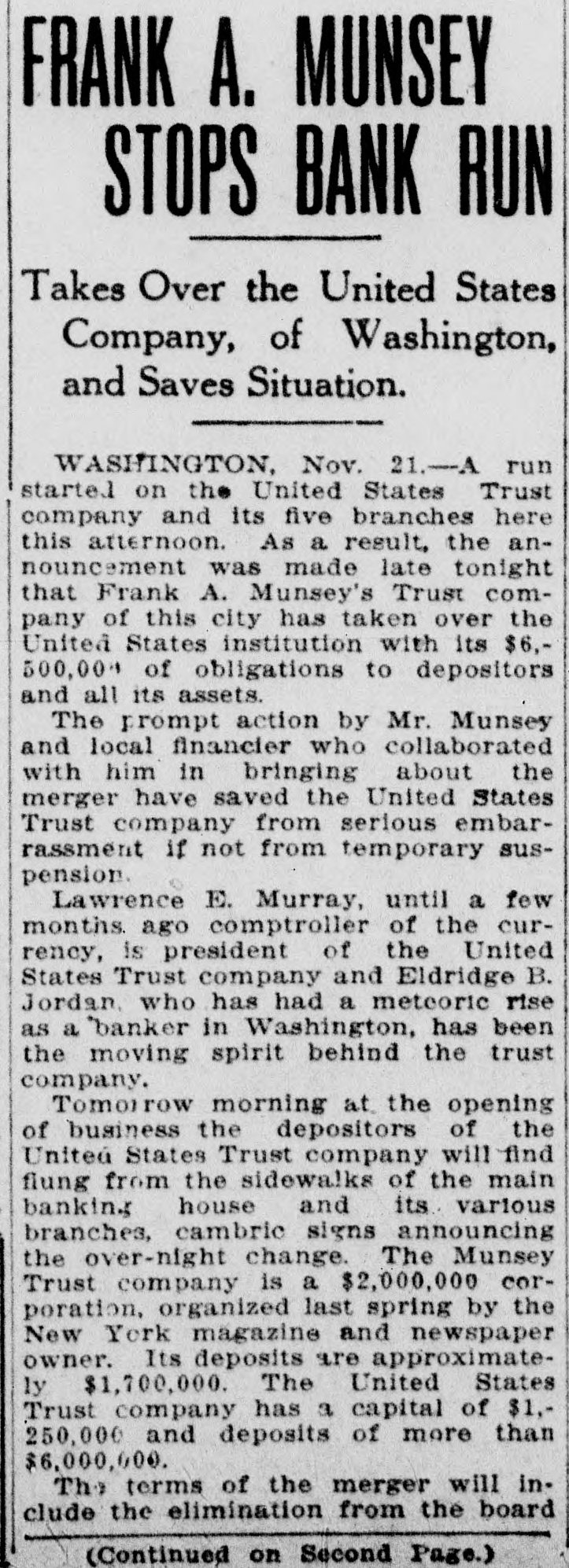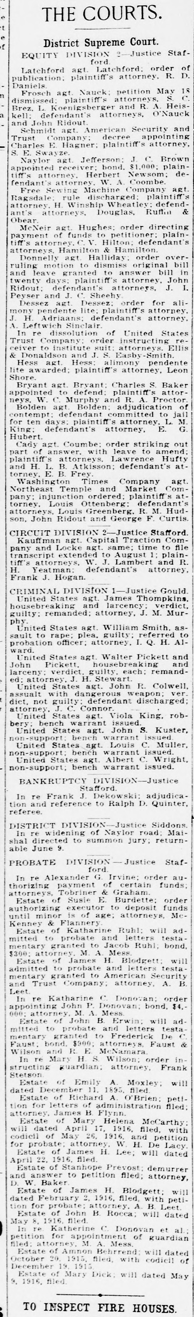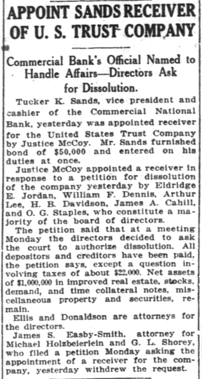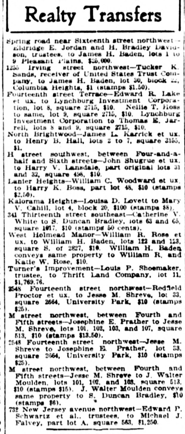 The capital of the six trust com panies, thirteen national banks and eighteen savings institutions doing business in the District of Columbia, is $17,370,916, divided as follows: Trust companies, $10,000,000; national banks, $6,977,000; savings institutions, $1,393,916. The surplus of all the banks is $12,221,627, of which the trust companies have $4,800,000; the national banks, $5,142,250. and the savings concerns, $278,977. Undivided profits are $2,387,529, distributed $1,152,167 to trust companies, $894,141 to national banks and $341,221 to savings banks. These institutions have invested in banking houses, furniture and fixtures $11,653,140, of which the trust companies furnish $6.594,188 and the national banks, $3,463,900. The total loans of all institutions March 4. from the reports, made to the controller of the currency on that date, were $60,529,593. Trust companies have $9,000,000 invested in bonds, and but $22,000 in stocks, including premium. National banks have $8,543,389 Invested in bonds, a considerable portion of which are governments. Seeking Information. A correspondent asks for information regarding the possible early payment of a dividend to shareholders in the United States Trust Company. The matter is one on which no correct report can be made at this time. Liquidation has been carried out to the extent of paying off all depositors of the Institution, during the period when the conduct of the affairs of the institution was in the hands of the Munsey Trust Company. On the order of the court the remaining assets were-placed in the hands of a receiver, who is making some progress in collections. Millions of Credit. In the conduct of the banking business, there is, naturally, millions of credit. It has been stated, officially, that there are $4,000,000,000 of cash in the United States and that there are nearly $18,000,000,000 of bank deposits. This is an evidence that $14,000,000 of "apparent" deposits are simply credit, based on the actual cash of less than 25 per cent of the amount. The handling of credits is one of the most important functions of the banker, and on his judgment must come the success or failure of the institution with which he is connected. There have been comparatively few failures of banks, due to the crookedness of officials or trusted employes. The majority of failures have been due to poor credits, lessening value of assets, failure of business men, etc. This must be the more apparent because of the large amount of credit extended. Bankers cannot be too careful in the matter of credits. It is natural for them to seek available credit information wherever possible and to endeavor, as local bankers have, to secure the fullest information of an applicant's business conditions, under oath: to secure collateral where possible and to be watchful always. Under the present system in force in some of the larger cities of the employment of a bank examiner by the local clearing house, it is possible also to establish a credit information bureau, where bank officials, in strict confidence, would be able to obtain information of the aggregate indebtedness of general borrowers. Some of the heaviest borrowers in the United States, great corporations, have planned to register all paper made by them with some trust company