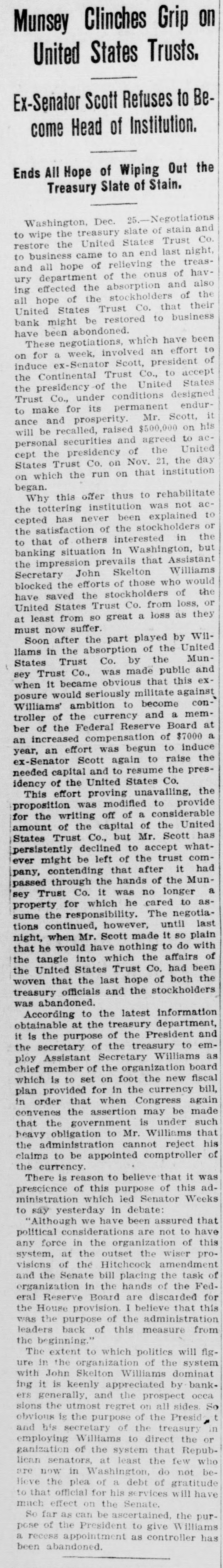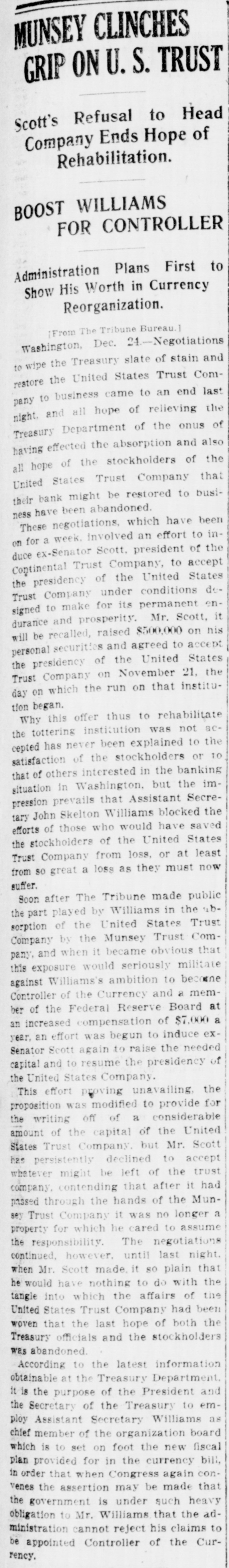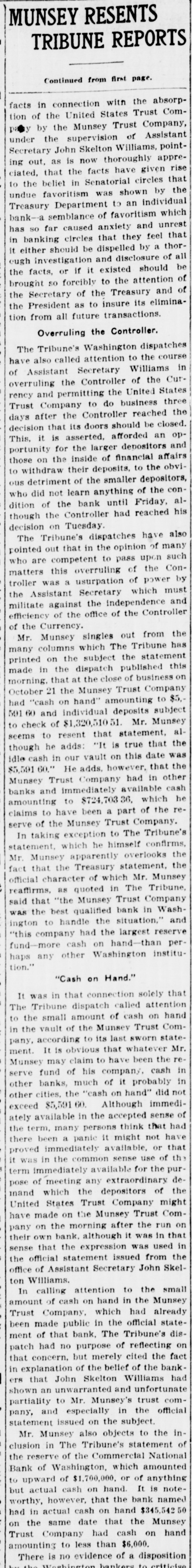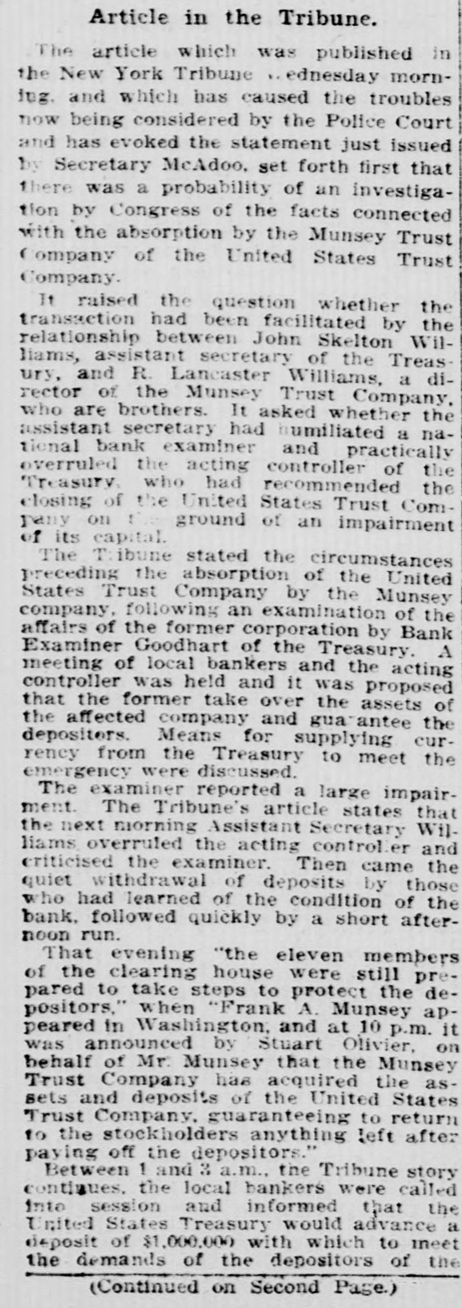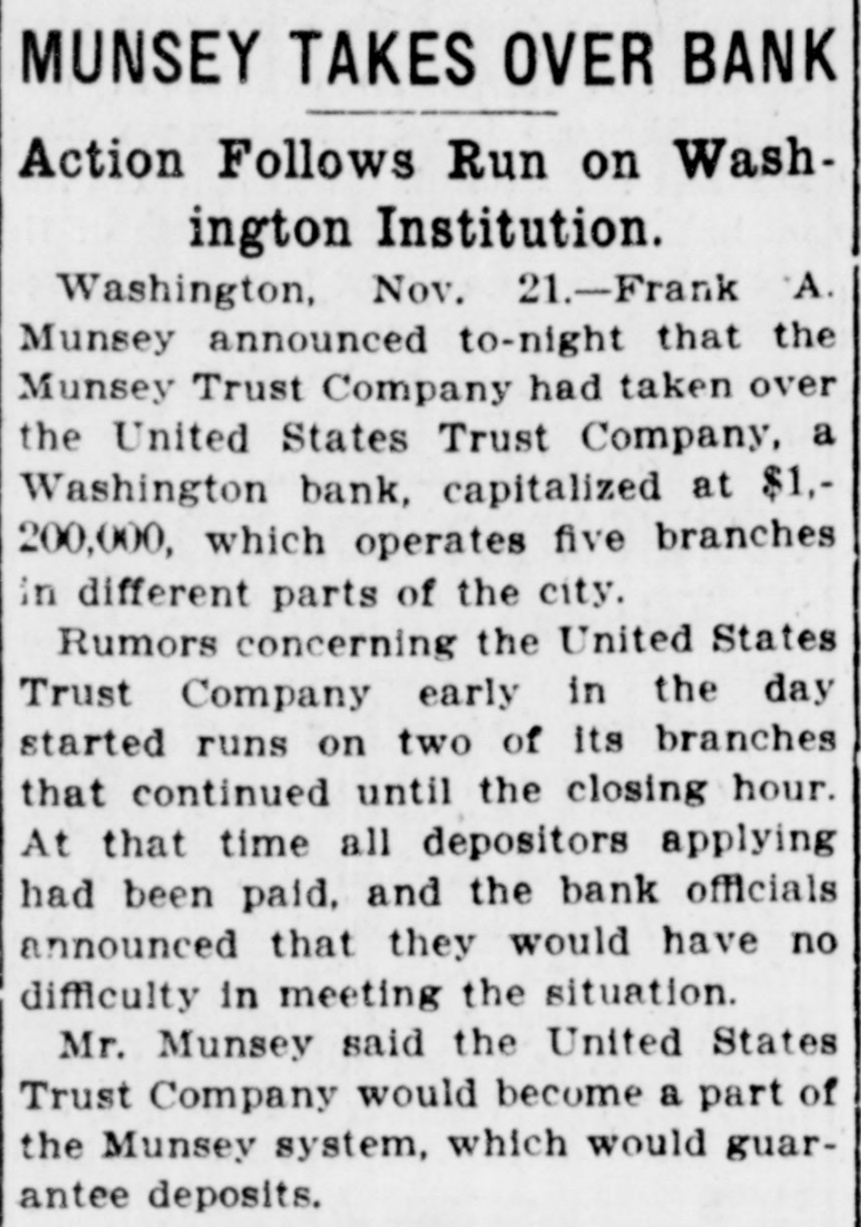 The capital of the six trust com panies, thirteen national banks and eighteen savings institutions doing business in the District of Columbia, is $17,370,916, divided as follows: Trust companies, $10,000,000; national banks, $6,977,000; savings institutions, $1,393,916. The surplus of all the banks is $12,221,627, of which the trust companies have $4,800,000; the national banks, $5,142,250. and the savings concerns, $278,977. Undivided profits are $2,387,529, distributed $1,152,167 to trust companies, $894,141 to national banks and $341,221 to savings banks. These institutions have invested in banking houses, furniture and fixtures $11,653,140, of which the trust companies furnish $6.594,188 and the national banks, $3,463,900. The total loans of all institutions March 4. from the reports, made to the controller of the currency on that date, were $60,529,593. Trust companies have $9,000,000 invested in bonds, and but $22,000 in stocks, including premium. National banks have $8,543,389 Invested in bonds, a considerable portion of which are governments. Seeking Information. A correspondent asks for information regarding the possible early payment of a dividend to shareholders in the United States Trust Company. The matter is one on which no correct report can be made at this time. Liquidation has been carried out to the extent of paying off all depositors of the Institution, during the period when the conduct of the affairs of the institution was in the hands of the Munsey Trust Company. On the order of the court the remaining assets were-placed in the hands of a receiver, who is making some progress in collections. Millions of Credit. In the conduct of the banking business, there is, naturally, millions of credit. It has been stated, officially, that there are $4,000,000,000 of cash in the United States and that there are nearly $18,000,000,000 of bank deposits. This is an evidence that $14,000,000 of "apparent" deposits are simply credit, based on the actual cash of less than 25 per cent of the amount. The handling of credits is one of the most important functions of the banker, and on his judgment must come the success or failure of the institution with which he is connected. There have been comparatively few failures of banks, due to the crookedness of officials or trusted employes. The majority of failures have been due to poor credits, lessening value of assets, failure of business men, etc. This must be the more apparent because of the large amount of credit extended. Bankers cannot be too careful in the matter of credits. It is natural for them to seek available credit information wherever possible and to endeavor, as local bankers have, to secure the fullest information of an applicant's business conditions, under oath: to secure collateral where possible and to be watchful always. Under the present system in force in some of the larger cities of the employment of a bank examiner by the local clearing house, it is possible also to establish a credit information bureau, where bank officials, in strict confidence, would be able to obtain information of the aggregate indebtedness of general borrowers. Some of the heaviest borrowers in the United States, great corporations, have planned to register all paper made by them with some trust company