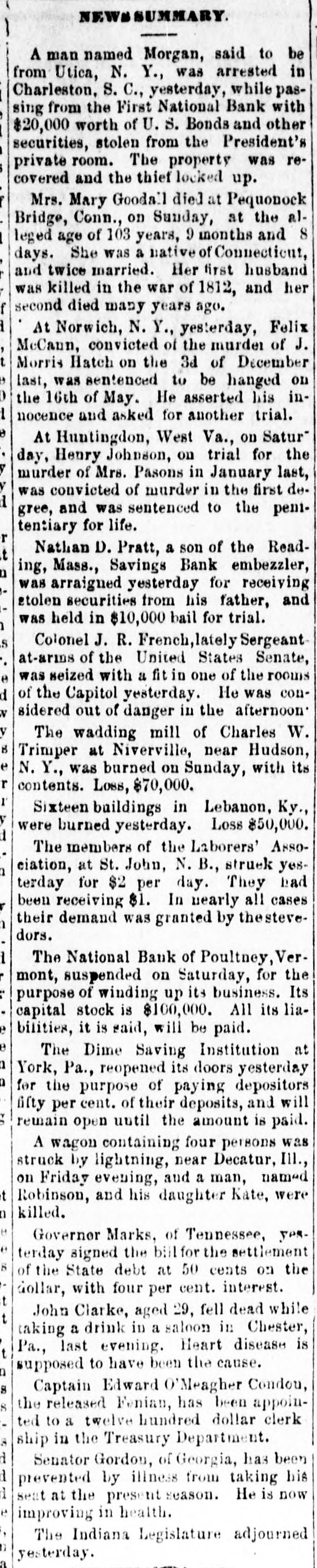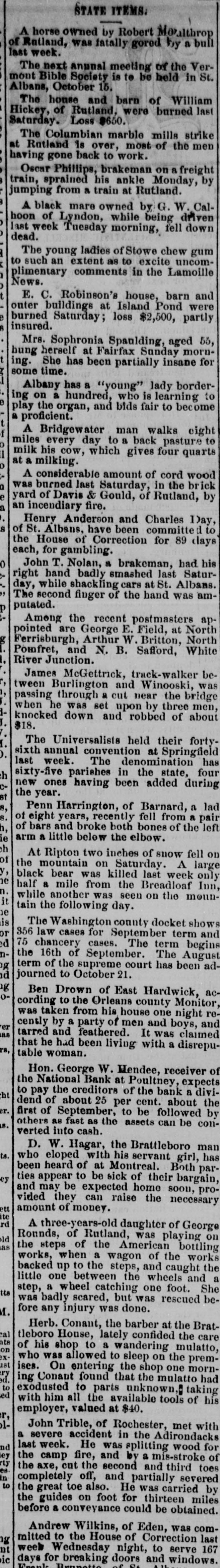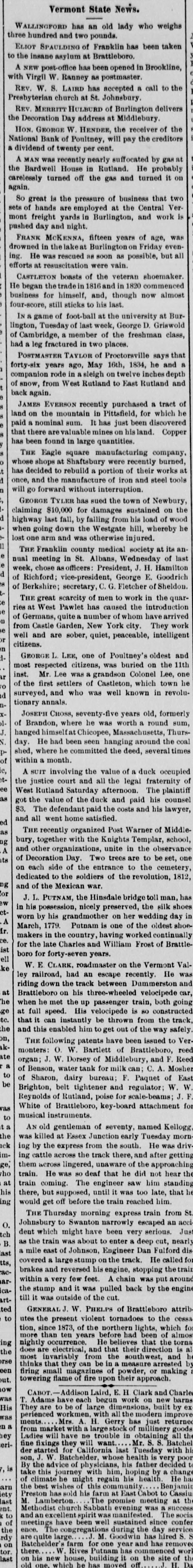 ELIOT SPAULDING of Franklin has been taken to the insane asylum at Brattleboro.