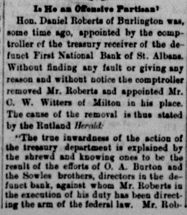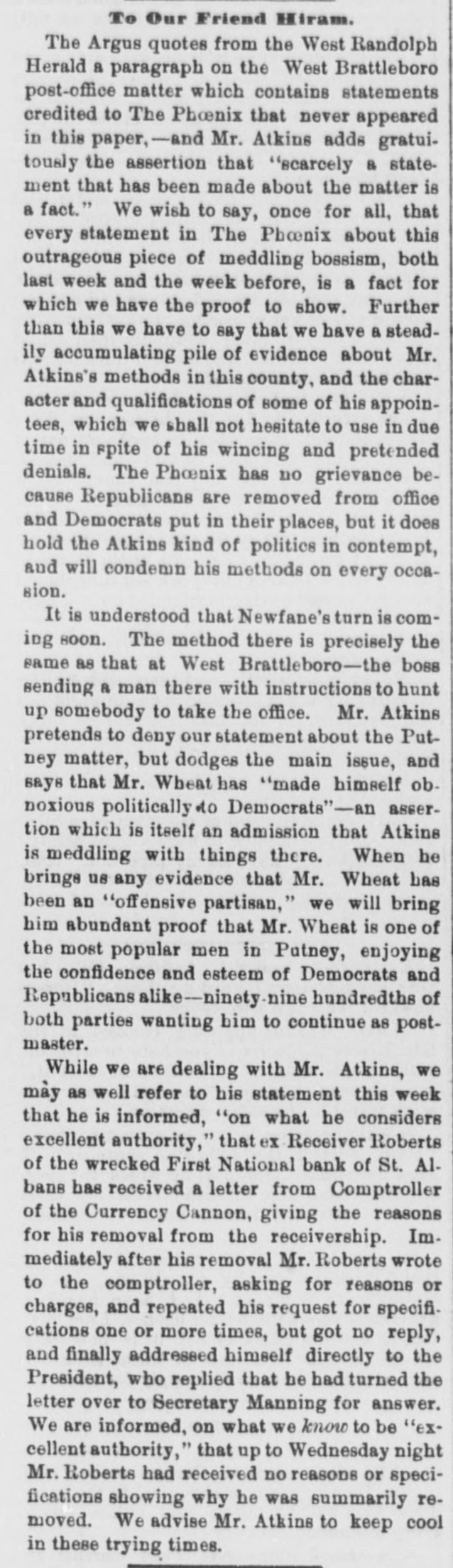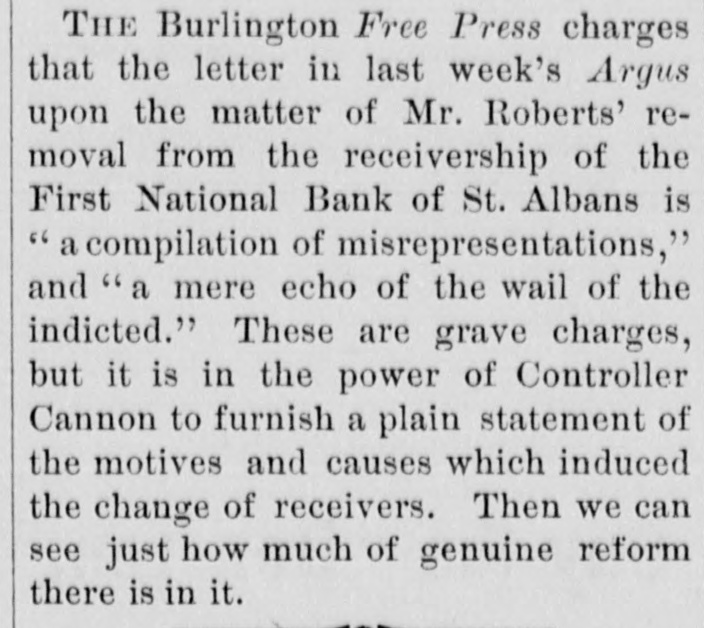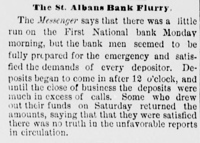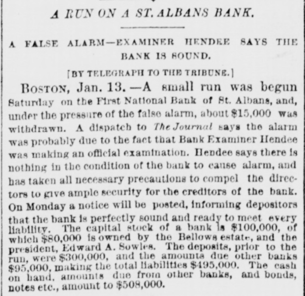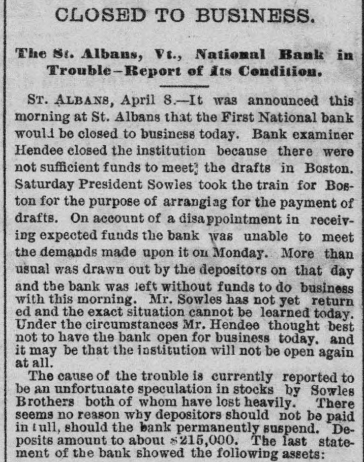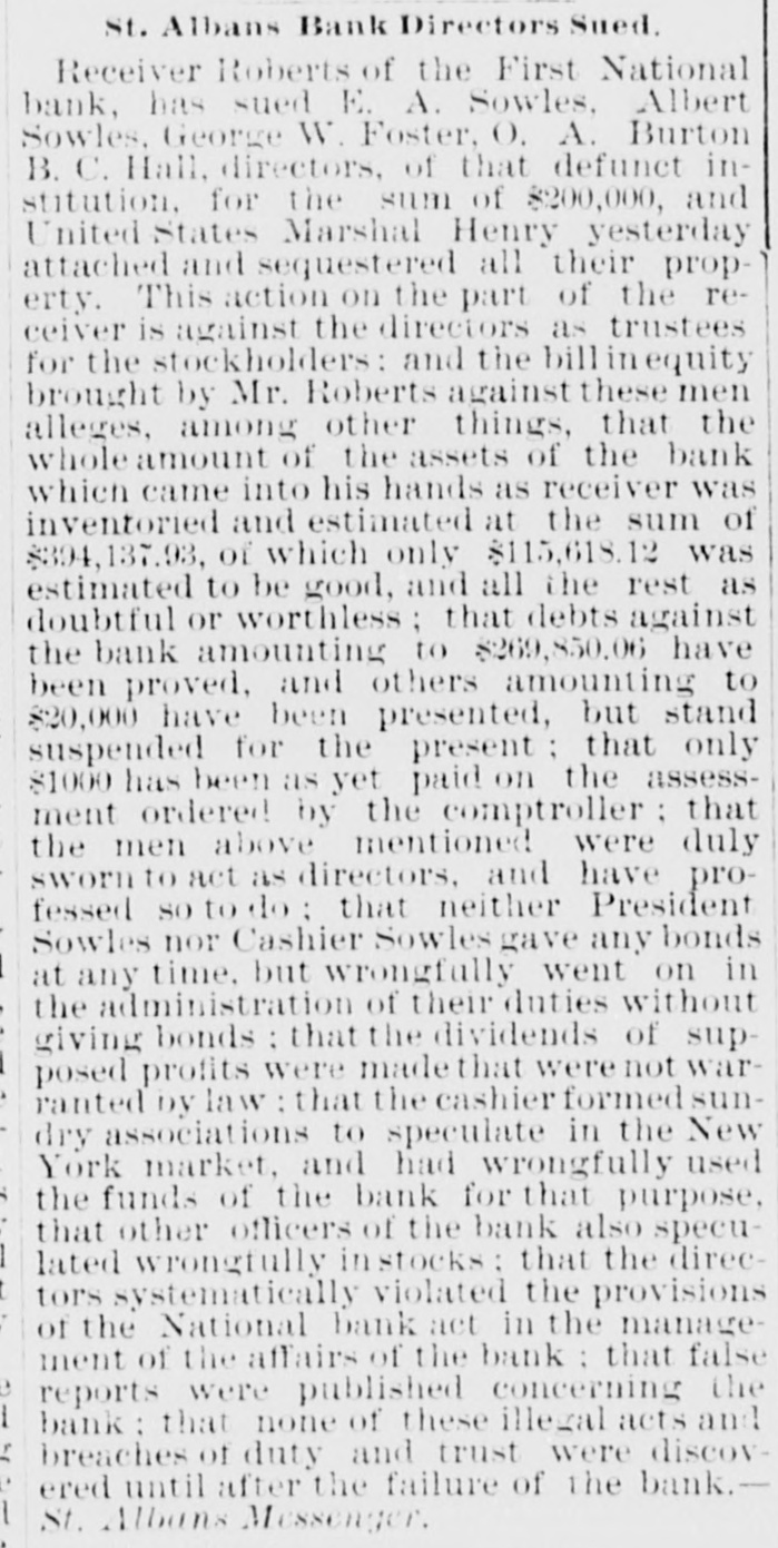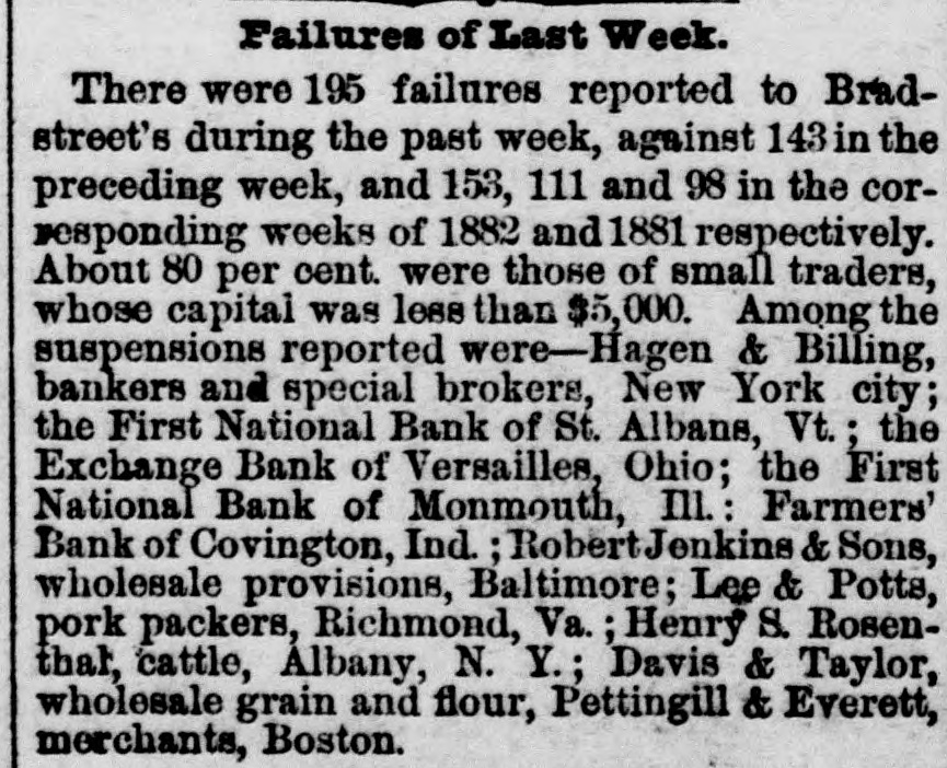 IN GENERAL Chinese conviots were Tuesday. received in Five the New Jersey State prison age, McCanlley, 35 years of Samuel and Westmorekilled his father, in atternoon. shot county, Pa., on Monday land a terrible riot between There was and Mexican railroad laborers Seven American Palmas, Mexico, on Monday. woundrd, men were at Los killed and thirteen three mortally. named MoPherson, charged in A man murder, was hanged by vigilants with yard at Dayton, Washingtan He prothe Territory, jail last Saturday night. tessed his innocence. The Boston Traveller reports the of failure the William B. Fowle, treasurer and says of Auburudale Watch Company, Hialiabilities it will l involve the company. are supposed to be small. The Treasury Department rules American that Canadian "Canadian tugs cannot tow waters into American vessels from waters beyond the first American in which they make entry." port medical commission appointed to The William H. Ostrander, under examine of death at Utica, New York,ha is not sentence to the Governor that he place reported insane. The execution will take on Friday next. The steamship Wanderer, at New that from Belize, brings Quatemala, news Orleans Barrios, the President of the Senor grossly and publicly insulted latter British "has Ambassador, and that the has left for England. A dispatch from Lima, Peru, division states Iglesias has organized a 1,000 that men at Cajamaica, is now marching reach Trujillo, which he expects to on about the 20th inst., and will provisionally occupy that city. Wright, Wooster & Co., wool dealers Boston, made an assignment Tuesday. be large. of Their liabilities are supposed to from firm was considered worth in The $100,000 to $150,000. It stood well surrepute, and the tailure caused much prise. The Surgeon General of the that Marine the Service is informed of steamship Hospital Amethyat left four cases sailed yellow fellow fever at Havana, and Boston. on the 4th instant for thence The health authorities of the latter city have been notified. Andrew and George Ensinger brothers, 17 at the toot of North Mountain, miles living west of Carliale, Pennsylvania, quarrelled and fought on Monday George mornabout a tract of land, and a ing Andrew in the back, inflicting shot wound which is likely to prove fatal. There was a heavy run on Monday of Second National Bank upon the New York, because its president, Elmira, reported, had lost $150,000 in have pork as As he was stated to him, fully speculations. settled all the demands upon the still retaining a large private tortune, run upon the bank ceased Tuesday. About $100,000 of the 31 per sent. the bouds have already been presented at Treasury Department for redemption call under the 121st call for bonds. The but will not mature until November 1st, when of the bonds will be redeemeed interest any presented prior to maturity, with to the date of presentation. Sallivan, the slugger, opened his gorgeous saloon in Boston Tuesday night. that So great was the throng at the opening blocked ) at 9 o'clock thousands of people with such street and swarmed in the tumultuousness as nearly to break down to t the bar. An extra force of police had Some be summoned to clear the place. 8 women were among the visitors. The National Eincational Assembly will meet at Ocean Grove, N. J., to-morGovernor Pattison of Pennsylvania United row. will preside, and Gen. Exton, States Commissioner of Edicetion, Other will : del ver the opening address. speakers will be Dr. Wickersham, SenaBiair of New Hampshire, and Judge Tourgee. tor The assembly will close on Sunday night. The punishment of the lash has been adopted in Montreal for certain of gross too offenses which have lately become frequent occurrence. A French Canadian atnamed Jean Baptiste Dubois of tempted tramp to outrage a child eight years circuma few weeks ago, under age, stances which would have conjured up Jnd Lvuch in a less peaceful place than Montro al. Tuesday he was sentenced receive 20 tashes upon his bare back the and to to do & year's hard labor in penitentiary The Grand iery of the Sons of Vateraus, in session Columbus, Ohio, Cow has elected the Howing fliears rander-in Chief, Frank H Marrill, Auburn, Maine Lienteuat CommanderChief, Augustns Salizman, St. Joseph, Missouri ; Vice Lieutebant Commanderin-Chief, Charle C Morton, Philadelphia Chief of Staff Horace L Wright, Auburn, Maine. The commandery embraces 300 camps with a membership of 10,020, all admitted within two years. The session nded yesterday. The effect of the Barlow failure very depressing.ou usiness in St. Albaus, Vermont, Theaday sident Brainerd de of the Trust Company, says the depositors will not lose much, but the positors are less hopeful. The company's last statement showed that it had 2,100 depositors with deposits aggregating $600,000. Several railroad men, among them General Fairbanks, had & conterat Barlow's house. The First ence National Bank prepared for a run yesterday morning, but none took place. Five hundred cases of arms and ammunition were sent from San Francisco last Thursday, on the Pacific mail steamship Comstock. All the cases were from Springfield, Mass., and those containing ammunition were branded "U. S. Government, 4 calibre.' It is said that during the last 18 months extensive shipments of war material have been regularly made to C. Schmidt, at Shanghai. "During that period 240,000 Springfield all rillas and 25 000,000 cartridges in have been forwarded, besides from 500 for to 800 bales of cotton duck, suitable tents, by express by each steamer for That China