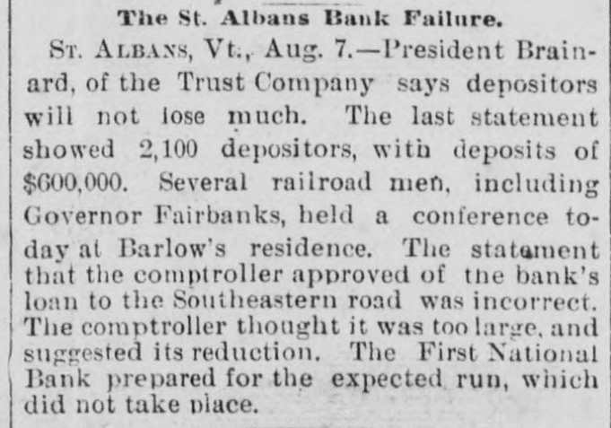 The trustees of the Southeastern railway have instituted an action against ex-Governor Hendee, receiver of the St. Albans bank, to recover $800,000, representing that amount of bonds of the Montreal, Portland & Boston railway placed with the bank for safe keeping, which the receiver now refuses to deliver.