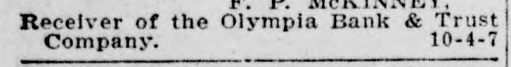 F. P. McKINNEY, Receiver of the Olympia Bank & Trust Company.