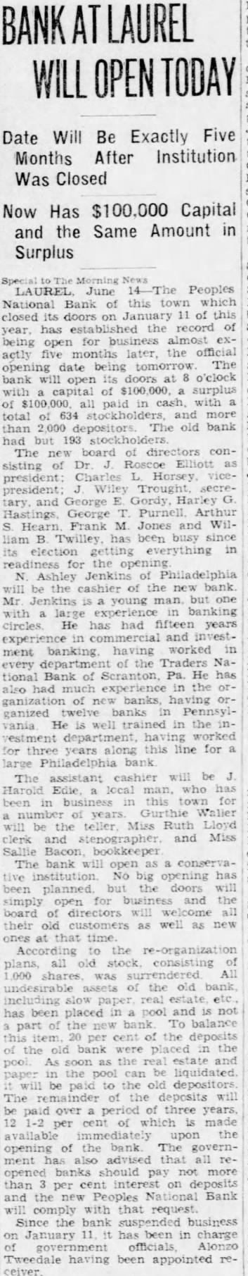 Governor Norris also announced authorized for opening these Delaware and South Jersey banks, which are members of the Third Federal Reserve Bank: