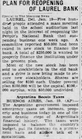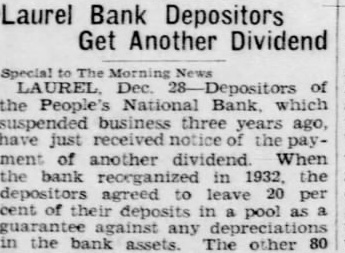 FRANKFORD First National HARRINGTON First National WYOMING First National DAGSBORO National DELAWARE City National DELMAR First National DOVER First National LAUREL Peoples National MILFORD First National ODESSA New Castle County Na. tional SEAFORD First National SMYRNA National Bank of Smyrna
