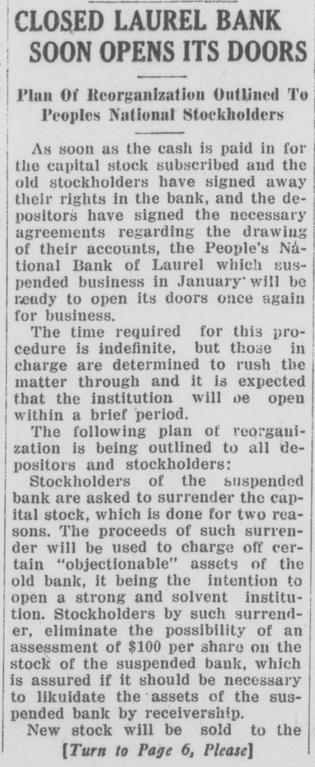 Citizens' National Bank SMETHPORT Grange National Bank of McKean Co. STRASBURG First National