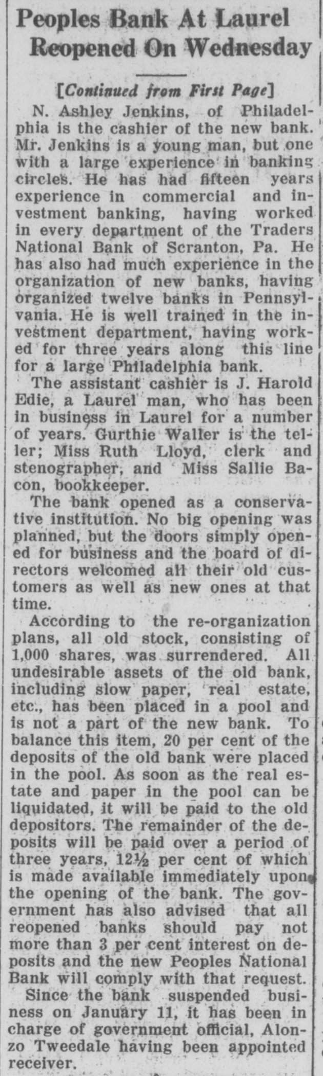 Bank NORTH WALES North Wales National Bank NUMIDIA Valley National Bank