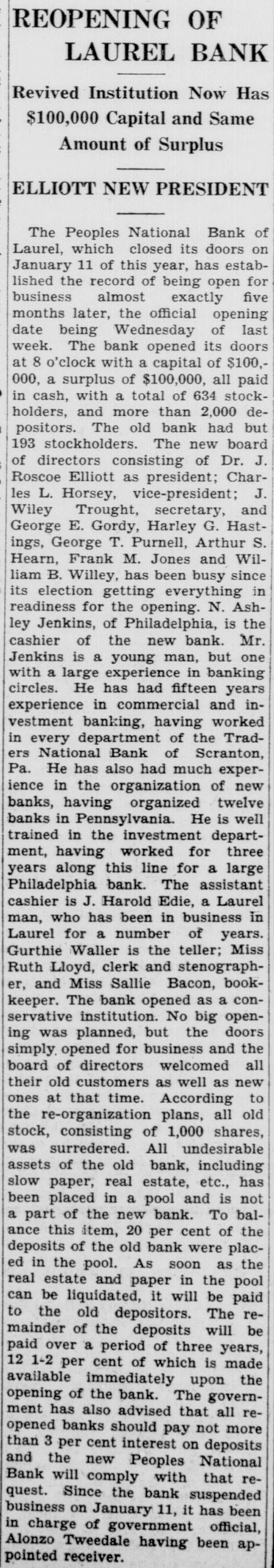 OF STATE BANKS REOPENING TODAY