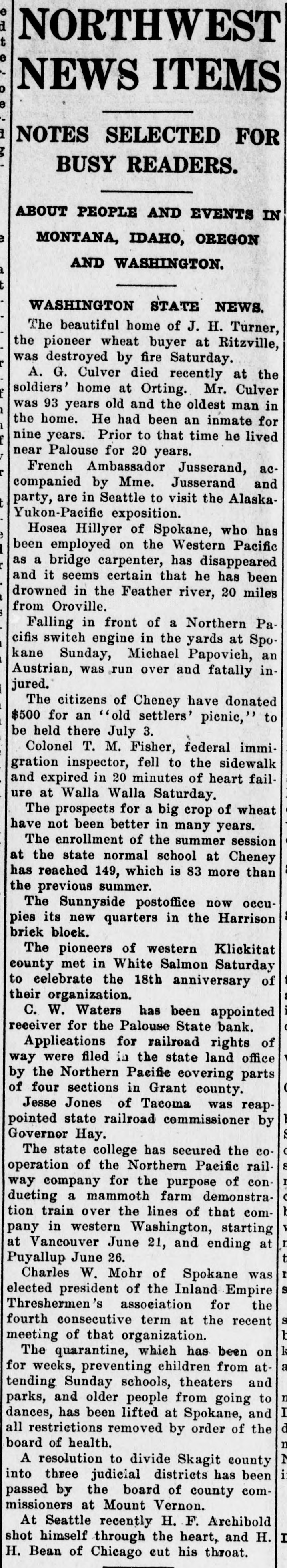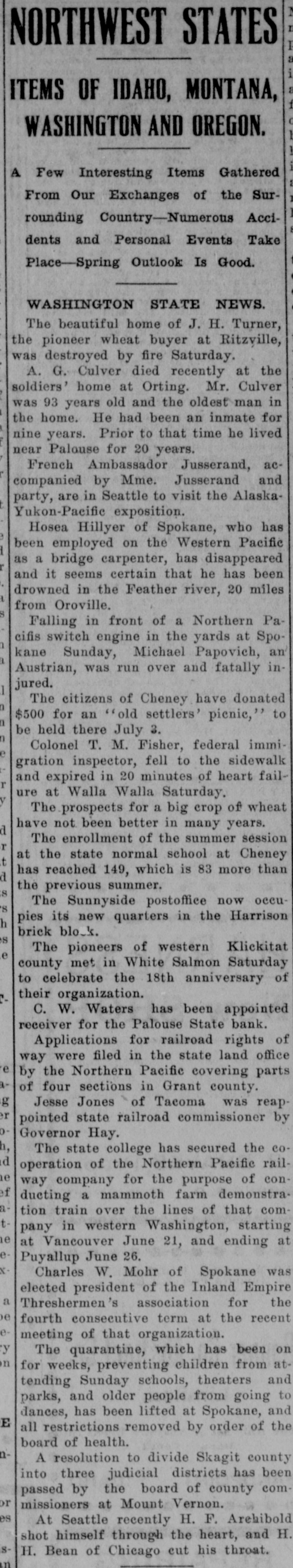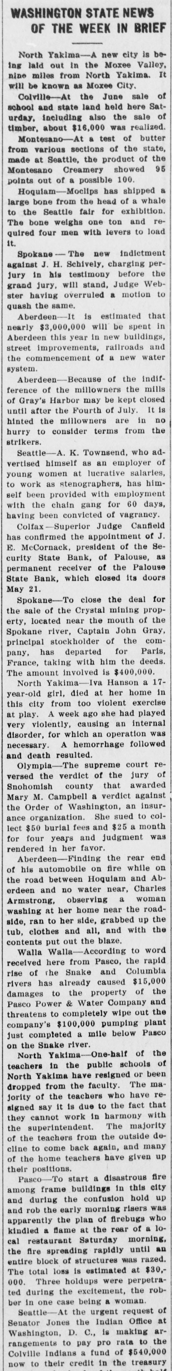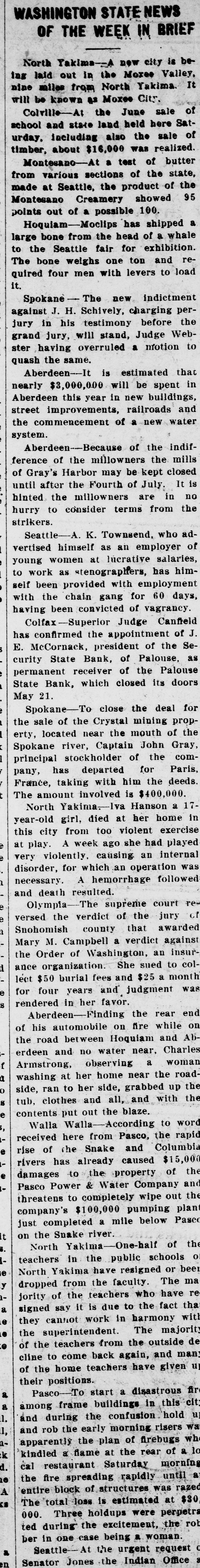 TO SPEND FORTUNE MAKING LOSS GOOD. Deputy State Bank Examiner Will Pay Off Losses. SPOKANE, May 24.-"Yes, the failure of the Palouse State bank, of Palouse, will bankrupt me, but I have made it a rule of my life to pay every cent I owe, and I shall try to settle all indebtedness on the present catastrophe with the financial institution with which I was formerly connected." said Deputy State Bank Examiner H. M. Boone, 1102 Eleventh avenue, on his arrival home last night. He was formerlyerly a state senator from Whitman county. "I severed my connection with the bank early in March, but prior to that time, in January, I had made a deal with M. J. Hawkinson, formerly of a North Dakota bank, that he take my stock," said Mr. Boone. "He took over only a portion of the stock, so my loss on that will figure easily $20,000, besides the personal note I signed to the Old National bank of Spokane, amounting to $20,000. So my total loss will reach $40,000." The bank is now in the hands of a receiver. J. K. McCormack. president and manager of the Security State bank, of Palouse..