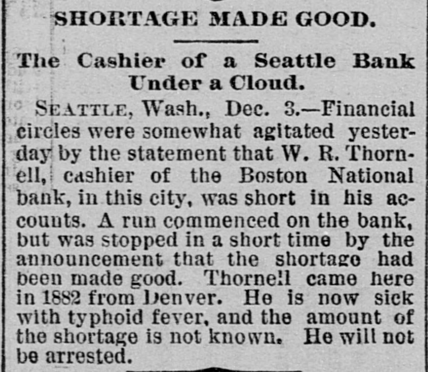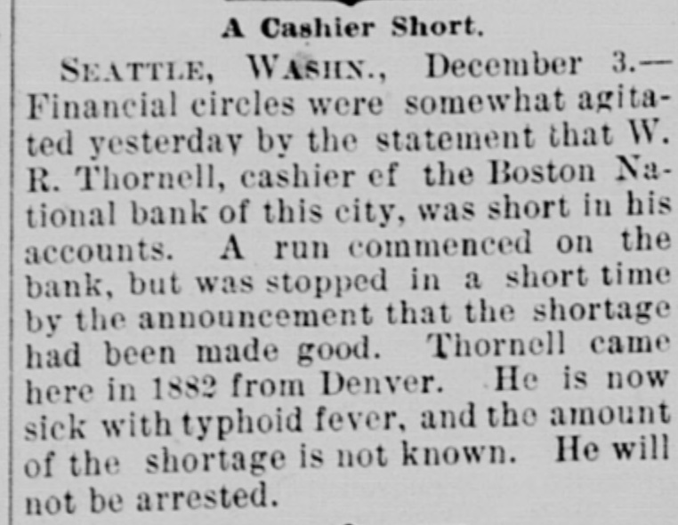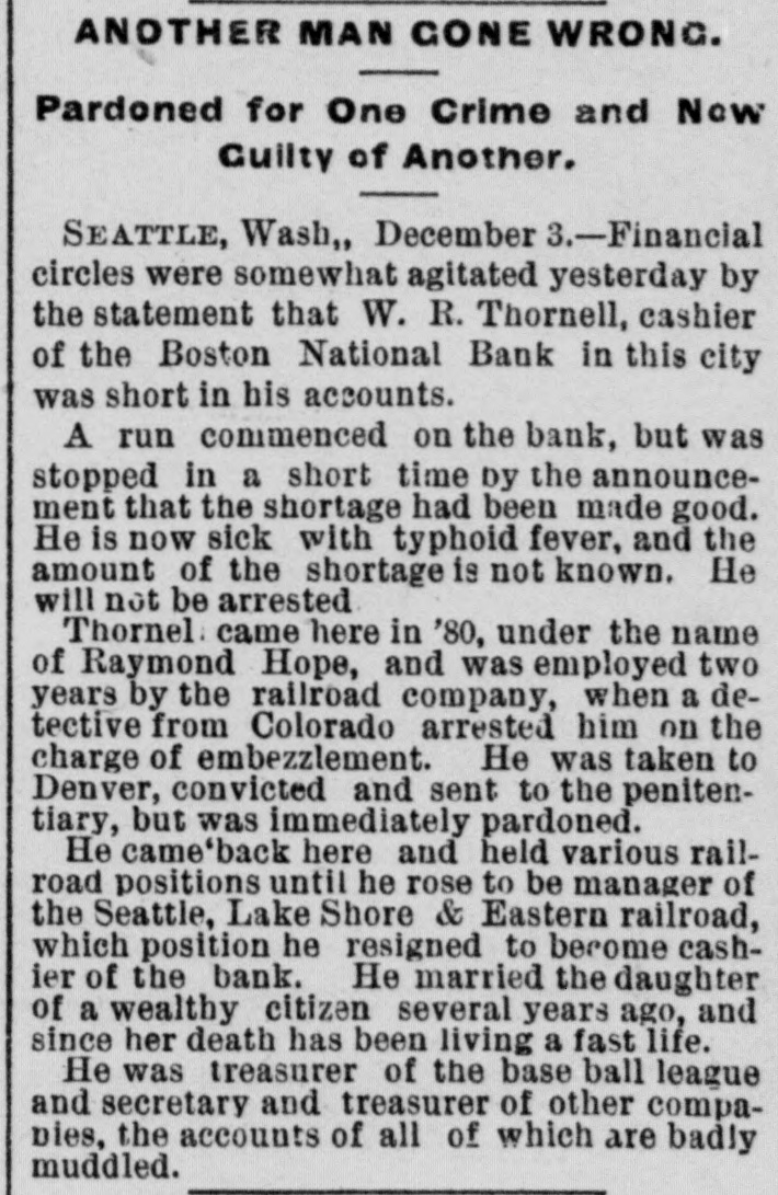 COAST NEWS. Bruce Cockrell a stock-raiser, and well known by racing men throughout the State, fell from his horse at Salimas Tuesday and died shortly afterward. Alexander P. Russell, who pleaded guilty to thd charge of criminal assault upon Miss Alice Peace at San Jose, has been sent to San Quentin for thirty-five years. The presbytery has erased the name of the Rev. D. L. Munro, the Stockton minister, who made & sensati nal confession a few Sunday ago, from the roll of the ministry and dissolved his relations with the Stockton church. Governor Waterman has pardoned H. Gallagher, sentenced from Placer county in February, 1880, to State Prison for life for the crime of murder, and also Dennis O'Neil, sentenced from San Francisco in November, 1883, for twenty years for the crime of murder. W. R Lehman, engineer of a Union Pacific surveying party at Seattle, was drowned by the upsetting of a sail-boat in the sound Monday. Mrs. Merrill, at Portland, is having made a p st-motem examination of the body of her mother Mrs. Victoria Langrez, whom she is charged with having poisoned. It is generally believed Mrs Langrez died from alcoholism. The Salt Lake Tribune has been sued for $15,000 damages on account of an alleged libel on Father Gatien, who went to Salt Lake and sold town-lot certificates in Spokane Falls. He was said by some Catholics to be a fraud, and the Tribune mentioned this. W.R. Thornell. who went to Seattle from Denver in 1882, where he had been convicted of em bezzlements and was pardoned, is short in his account as cashier of the Boston National Bank of Seattle. When the fact became known a run was made on the bank, which only ceased when the shortage was made good. Thornell was treasurer of a base-ball league and several other instituti ns, who accounts are said to be much confused,