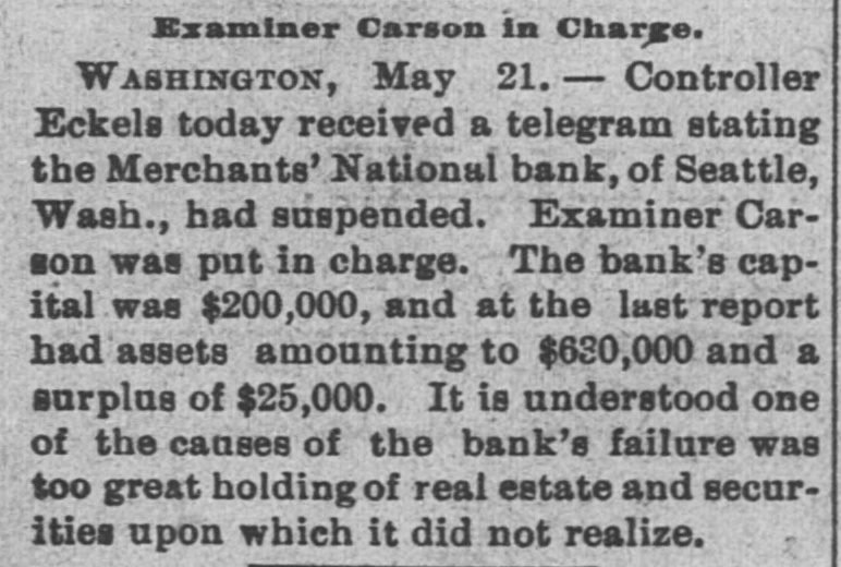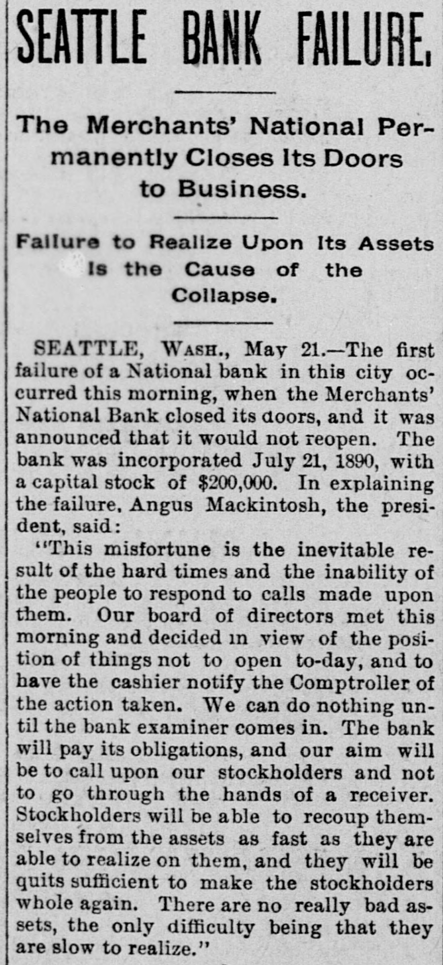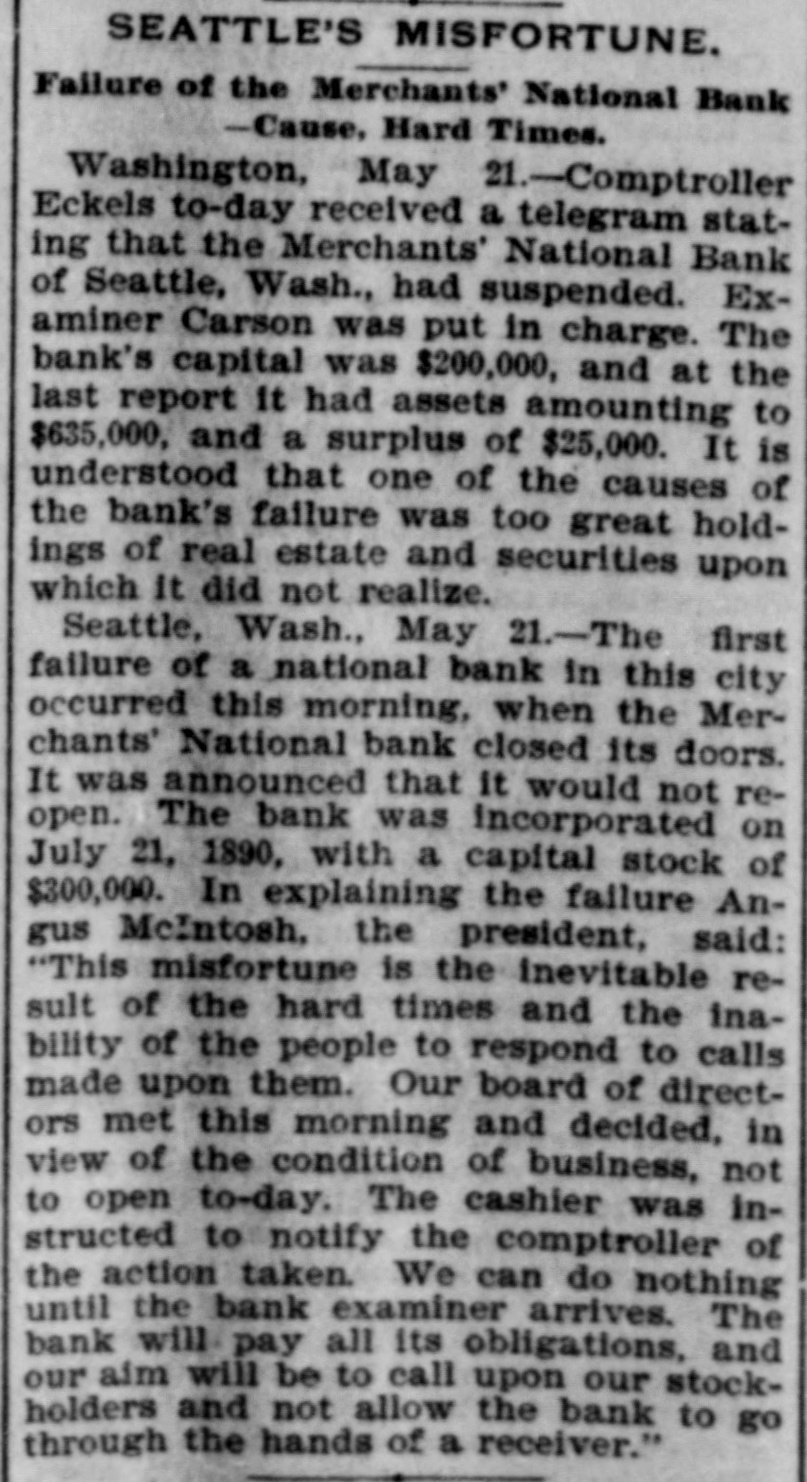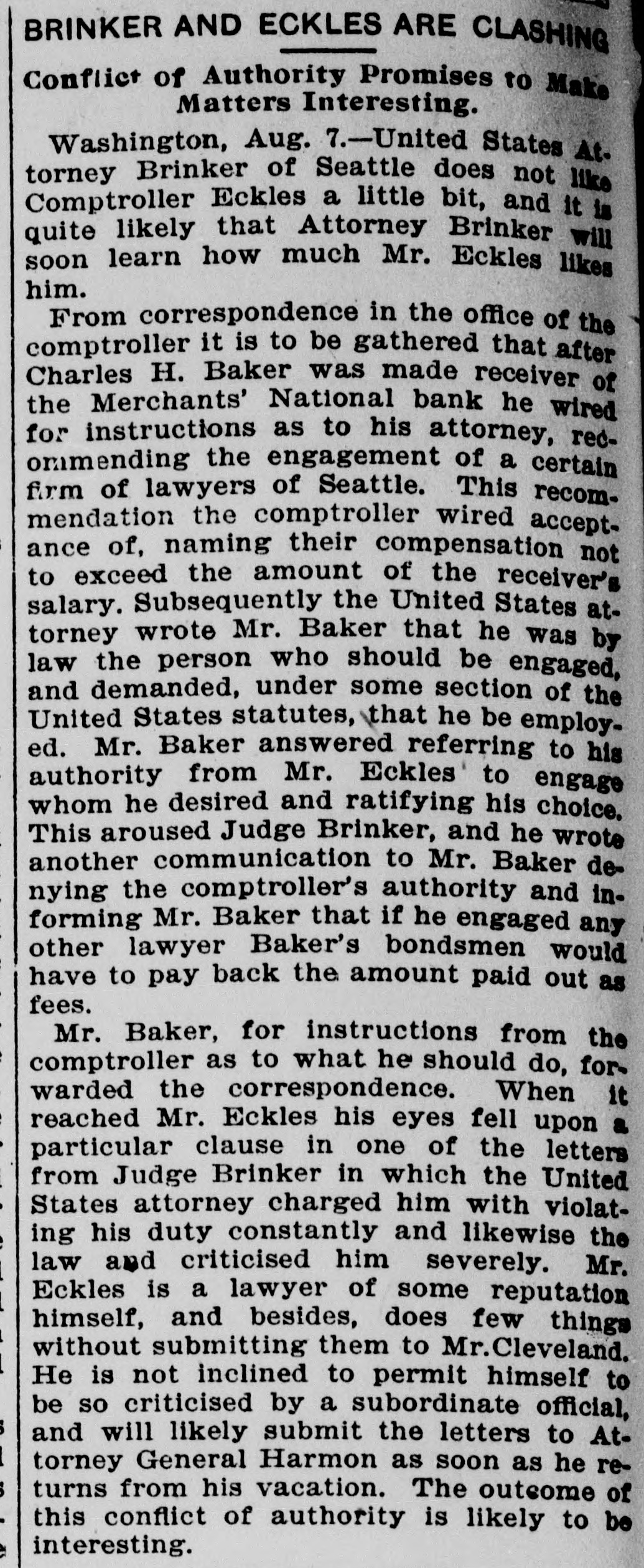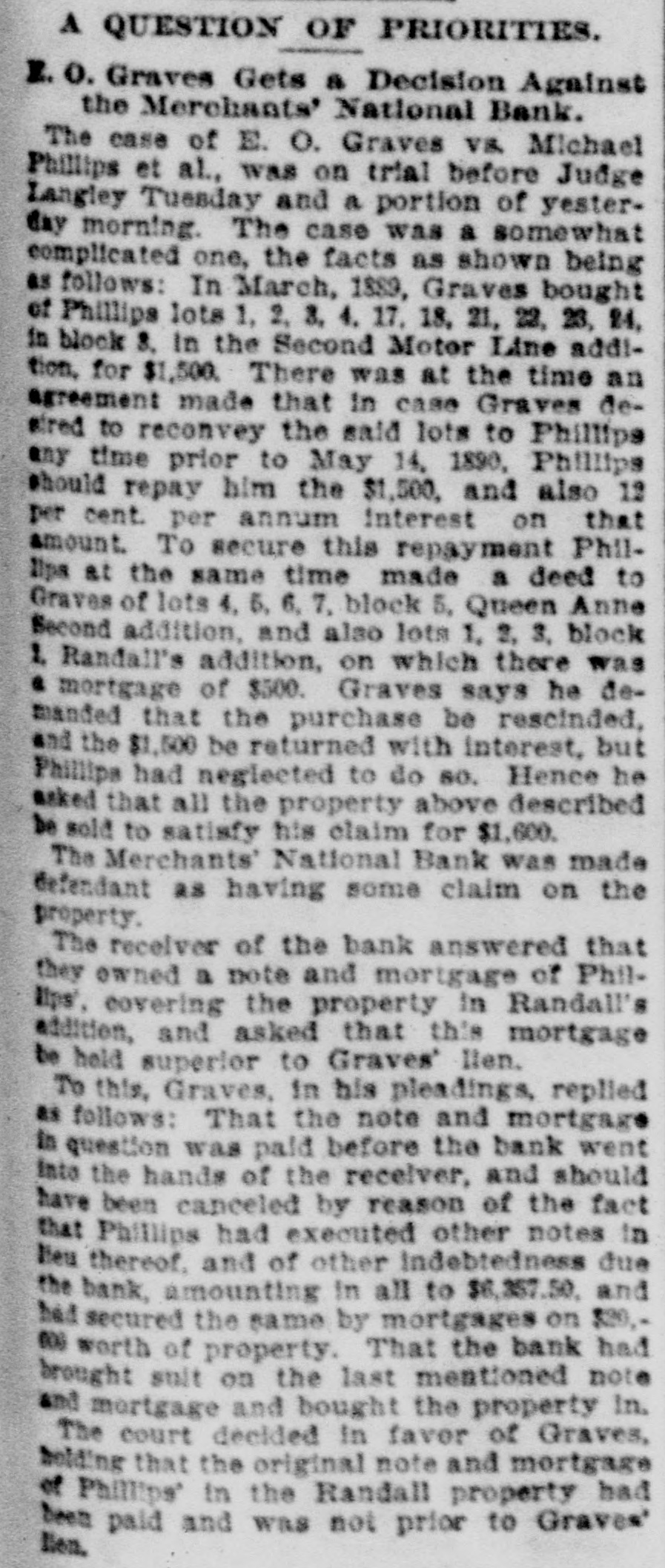 Totals. $684,134 93 $474,676 18 Of this amount in suspended banks the city will be able to realize approximately $40,000, as the Traders' and the Washington National will probably pay dollar for dollar in the long run, and the Merchants' National will probably pay from 40 to 50 per cent. In accounting for his balances, Mr. Boggs tendered the bank books of the suspended banks. This was on the ground that the city, having failed to name depositories, was responsible for the deposits as placed by the city treasurer. When the States Savings bank closed, the city at once began to take vigorous action, under the direction of Mayor Orr, to recover the $5,000 held there in the form of city warrants. By a recent decision of the superior court the city secured the warrants, and it was during the trial of this case that Mr. Boggs, on the witness stand, made the admissions upon which it was proposed to arrest him on a criminal charge. Chairman Cavender, of the financial committee, can speak on this point. He says: "If Boggs had only returned to the city the warrants which he had at the time he went out of office, we would have been willing to have accepted the same, and have reduced the accounts of the banks just that much, But I understand he was afraid to do so, on the ground that it was not legal to buy warrants out of their order, and that he feared certain citizens, who were taking an interest in the financial matter, might prosecute him on an alleged criminal offense. So he placed the warrants in bank as cash, $212,000 in all at that time, according to his report just before he went out, In other words, he reported $212,000 on hand, held as cash in warrants. That was just before he went out of office, and, when he turned over the office, there wasn't a warrant there. On the stand in the State Savings bank case he testified that he had deposited these warrants as cash, but there is no telling what the number of the warrants were, and if they were returned today I guess the city would be willing to credit the banks with them in reducing their account." Now as to the specific counts: "It appears that Boggs rendered himself liable in buying the warrants as he did, and I'm afraid he rendered himself liable by disposing of them as he did, At any rate, the test in this matter is to be made on a $7,000 note given by his clerk, Hill, and indorsed by himself, another note given by Bair & Loomis and an item for campaign purposes' of $5,000, all of which he deposited as cash for the city. The notes were not cash, of course, and the campaign fund item is not cash, of course." Mr. Boggs is charged by the finance committee with having control of the State Bavings bank and using it as & place to deposit worthless paper. For instance, it is cisimed the Bair-Loomis note came from the Bair-Loomis banking institution, and that that was the amount of city money reported on hand there at one time. Later, however, it is understood that the amount was lost in the townsite of Des Noines, and the amount in the form of a bote came into the possession of Mr. Boggs and was deposited as cash. One member of the committee says: "Boggs, no doubt, used the State SavIngs bank to cover up his shortages. The Hill note laid him open to a criminal action, The campaign fund item, of course, was placed in the bank to cover up ashort. age and in my opinion It was a very foolish way in which to cuver up a leak. When the city council tried to secure interest on the deposits in the banks, Baggs agreed to pay 5 per cent. interest, or rather secured an agreement of the banks to pay it. This amounted to $1,200 per month, and was paid in full for only a short time, when several of the banks failed