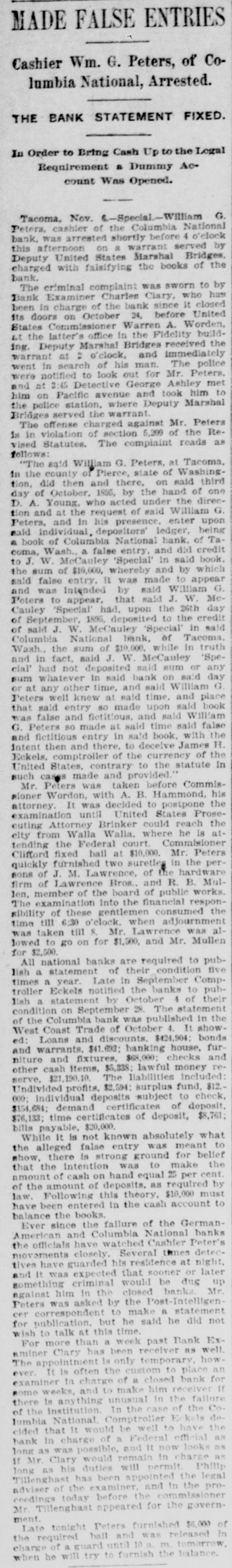The receiver of the German-American having gained possession, the cashier of that institution gave up hope and made a clean breast of all its operations, telling of how both Boggs and McCauley had been in receipt of regular salaries from the bank and implicating the officers of the Columbia National in extensive frauds upon the city and county. Notes of Boggs for $11,300 were also found among the securities supposed to belong to this bank in the vaults of the Columbia.