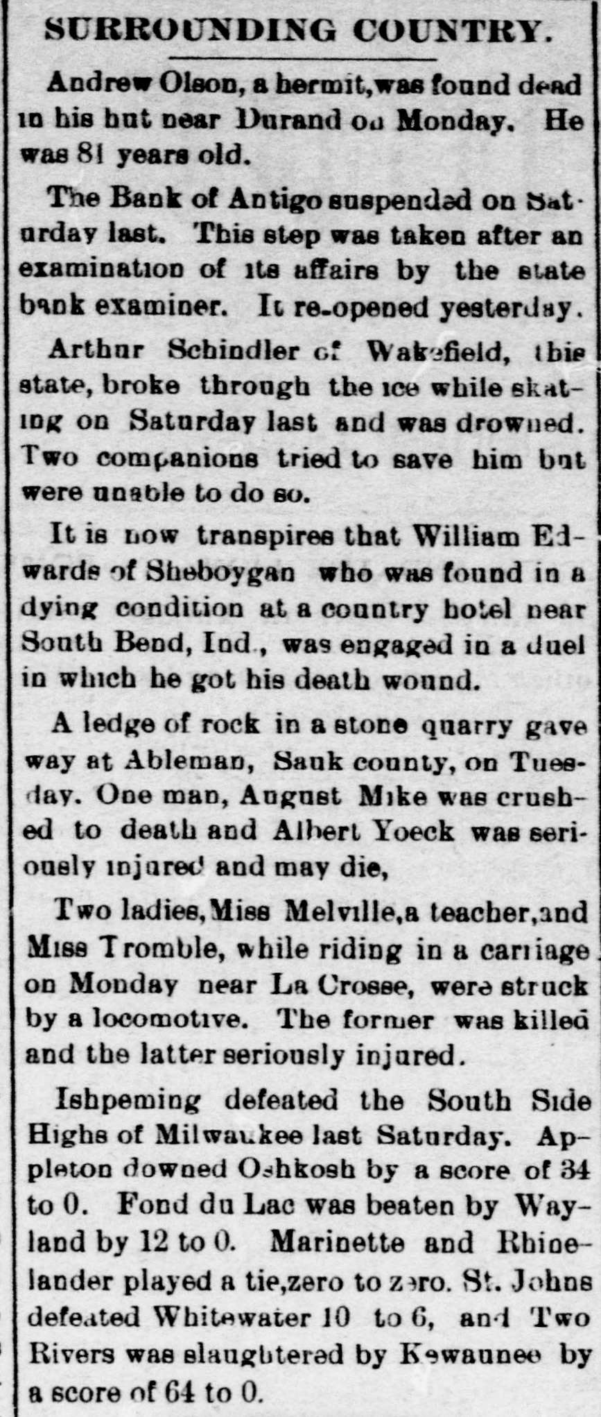 Frederick Muntz was crushed to death in the machinery of the pulp mill at Niles, Mich.