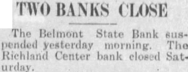 TWO BANKS CLOSE The Belmont State Bank suspended yesterday morning. The Richland Center bank closed Saturday