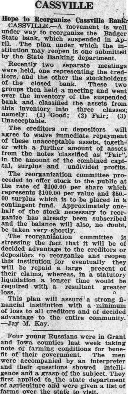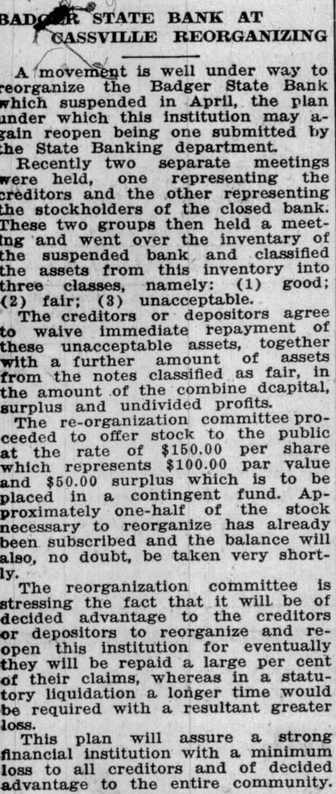 (Seal) County Judge. Kopp & Brunckhorst, Attorneys for. C. F. Schwenker, as Commissioner of Banking of the State of Wisconsin.