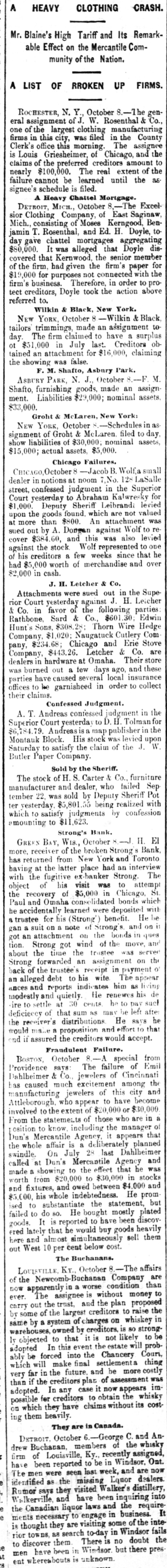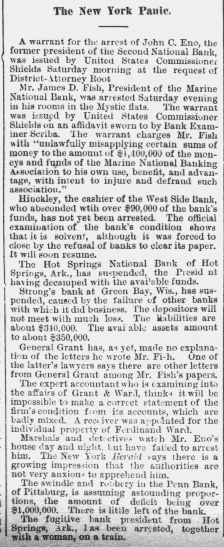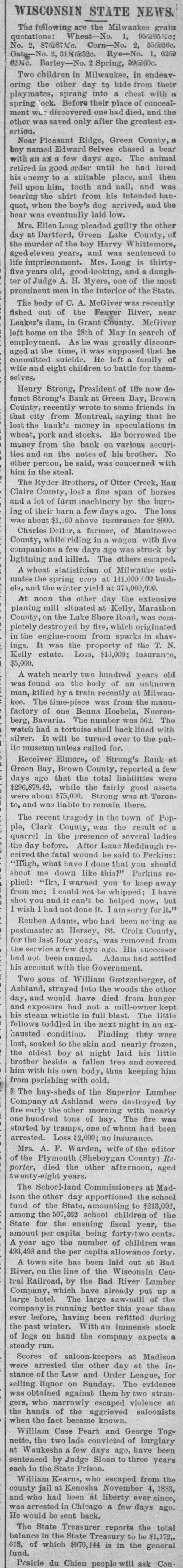 DAILY RECORD-UNION TUESDAY MAY 27, 1884 THIS MORNING'S NEWS. In New York yesterday Government bonds were quoted at 1203/4 for 4s of 1907, 113 for 41/28 sterling, $1 85@4 87 1003/4 for 3s; silver bars, 110½ Silver in London, 50 15-16d consols, 101 7-16d 5 per cent. United States bonds, extended, 105; 4s, 123: 41/28, 113½ In San Francisco Mexican dollars are quoted at 89@89½ cents. Mining stocks opened weak in San Francisco yesterday morning, with a light demand all round. On the second call Alta, Bodie and Gould & Curry were a trifle higher than on the first call, but in most other cases the opening prices on the first call were not sustained. The whole market has a decidedly soggy appearance. An English nobleman has married a ballet girl. Strong's bank at Green Bay, Wis., suspended yesterday. The Pennsylvania Bank, of Pittsburg, closed its doors again yesterday, causing much excitement. George Koste was thrown from a wagon in San Jose Sunday, and killed. A sixteen-year-old boy was captured at San Juan, San Benito county, early yesterday morning, while attempting to burglarize the postoffice. A little steamer ran the Cascades of the upper Columbia river-six miles-in eléven minutes, Sunday. Two successful burglaries occurred Saturday and Sunday night in Fresno. The general State election takes place in Oregon next Monday. Charles Fairchild, 65 years old, has been held to answer at Orland, Colusa county, on a charge of indecent assault upon an eight-year-old girl. Miss Hickox, of California, is among the graduates of the New York Conservatory of Music. Fire at Reading, Mass.: loss, $200,000. Disorder is threatened in New Iberia, La., over a contested Judgeship. The ten-mile bicycle race in Washington yesterday was won by J. S. Prince, in 32 minutes and 46 seconds. Michael J. Hull dropped dead in the California Market, San Francisco, yesterday. The Boston Herald has been sued for libel by a Catholic priest, the damages being laid at $100,000. Italy supports France in her demands for the international control of Egypt. A negro in Georgia claims to be the Messiah, and the colored people of that region believe in his pretensions. In Belleplaine, la., yesterday, Samuel Dunlap shot his wife three times, and then cut his own throat. Moody and Sankey will leave England for America July 5th. The American lacrosse team won another game in England yesterday, defeating the Yorkshire team. The Cheyenne Indians in Montana threaten to take the warpath, causing great alarm. The Presbyterian General Assembly adjourned at Saratoga yesterday, to meet in Cincinnati next May. John Lowell. son of ex-Judge Lowell, of the New York Supreme Court, killed himself in Buffalo yesterday. Miss A. Hazard, reparted missing from Cincinnati, has been found drowned in the Hudson river at Hastings, N. Y. Mrs. N. Noffsinger accidentally shot and dangerously wounded herself in Douglass county, Oregon, Sunday. In New York yesterday John Carpenter stabbed his wife to death, fatally wounded her sister, and tried to commit suicide. One hundred and fifty people were injured at Chatham, Ont., yesterday, by the collapse of a building. A boy and two girls were drowned at Galt, Canada, yesterday, while boating.