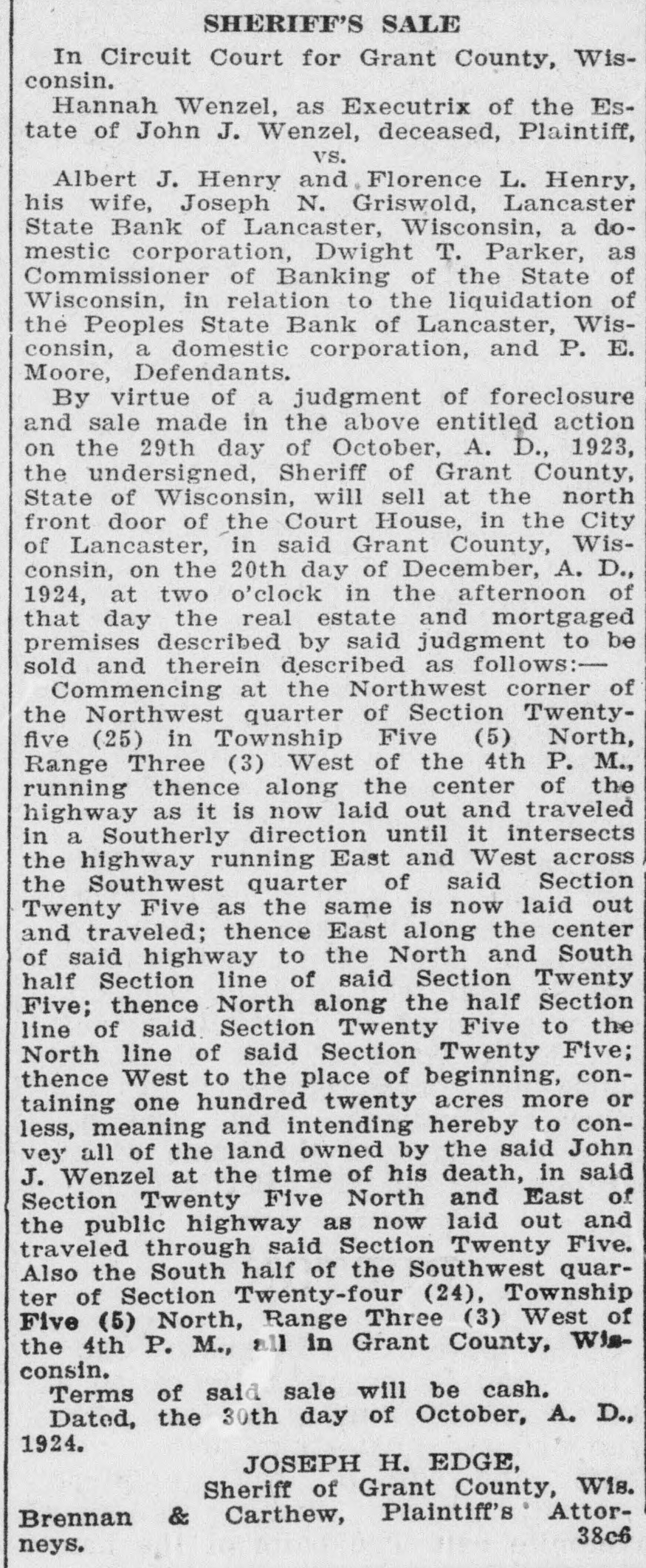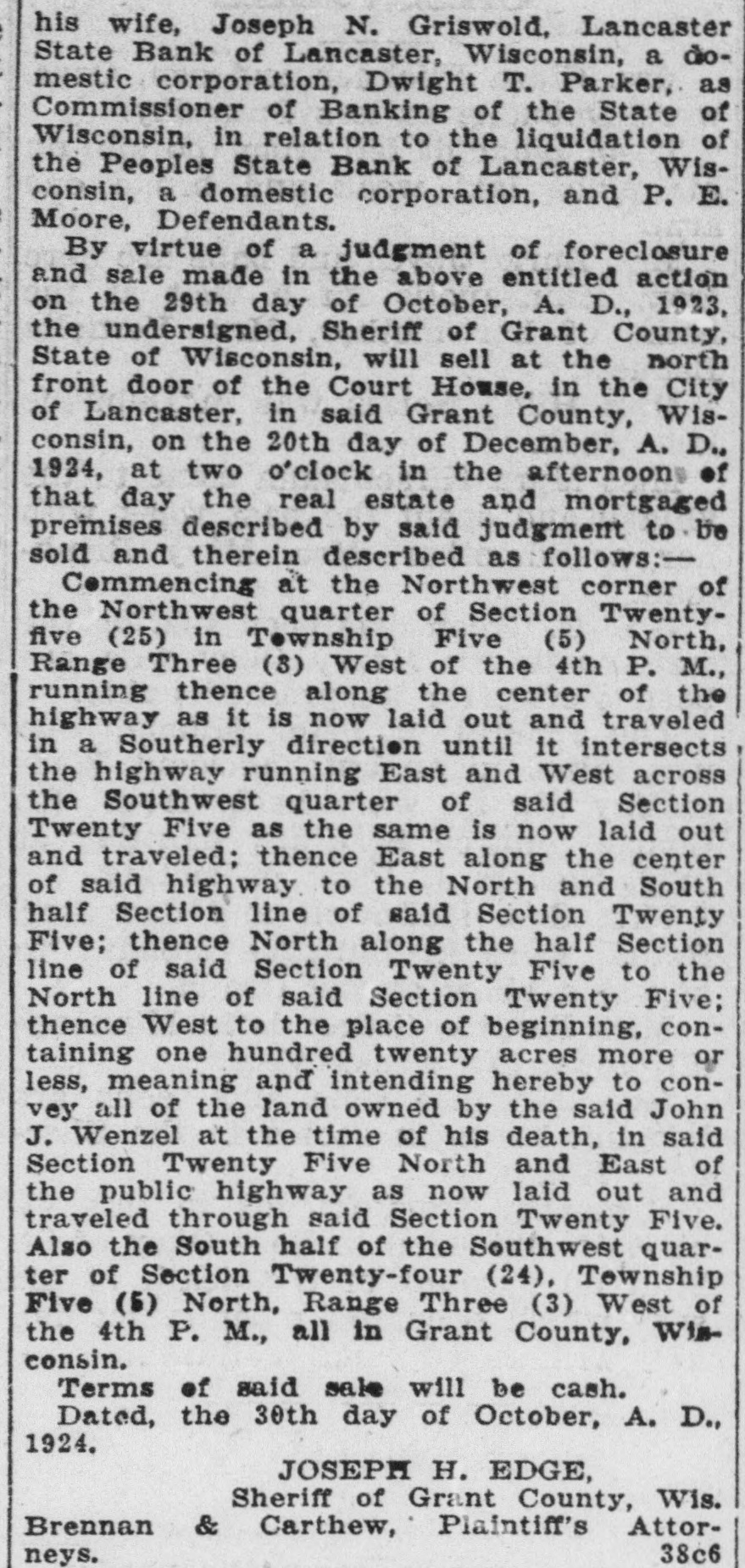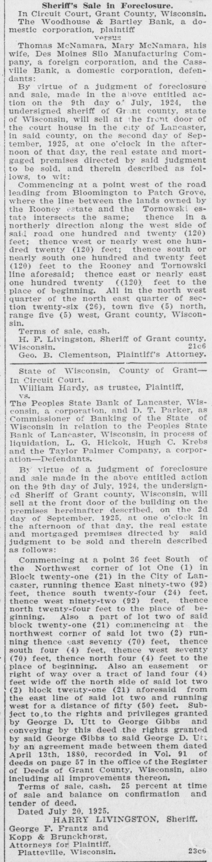 ACCUSED BANK OFFICERS READY 'TO FACE MUSIC' Justice to Move Swiftly in Local Case. PROGRESS IN PEOPLES STATE BANK TANGLE 4 p. m. Tuesday-C. H. Basford arrested on larceny charge. * 3 1. m. Wednesday-L. A. Clark * and J. Harold Pugh return to Lancaster with District Attorney Geo. B. Clementson. * * 8 a. m. Wednesday-Pugh and Clark arrested on embezzlement charge. * * 1 p. m. Friday-C. H. Basford held to now pending term of circuit court on charge of embezzlement. Bail set at $10,000. Bail provided by Adolph Vesperman, * So. Lancaster farmer. * 3 p. m. Friday-Pugh and Clark * held to now pending term of * * circuit court on embezzlement charge. Bail set at $10,000. Pugh bail provided by S. W. Doolittie. Clark bail provided by Lambert Groenier and Jos. Godfrey. * * 9 a. m. Monday-Pugh and Clark enter People State Bank to assist Examiner Edwards in * straightening out tangle. * * The above is a concise statement of the events of the past week surrounding the Peoples State Bank suspension. District Attorney Clementson in his statement elsewhere, fully covers the methods used in getting in touch with Pugh and Clark and their return to Lancaster. The two defendants who summarily ran away Saturday a week ago returned with Mr. Clementson Wednesday morning. They remained in the sheriff's custody until Saturday when bail was provided for them. While all three cases are set for the present session of court, on this week, it is considered unlikely that the Basford case will go to trial at once although Special Prosecutor Carthew expresses a willingness to try the case immediately. S. H. Taylor has been retained as counsel by Mr. Basford. It is said on good authority that both Pugh and Clark see the folly of their leaving Lancaster. They decline to state where they spent their time in Chicago. The boys got in touch with Mr. Clementson Tuesday through a Chicago intermediary. Mr. Clementson and Sheriff Edge went to Chicago that night and after some negotiation next day the district attorney saw the men personally. Touching letters from home asking both young men to come back and "face the music" no doubt had a good deal to do with their final determination to come peaceably. Examiner Edwards has made no exact statement as to the probable amount of defalcations and any statement made as to a specific shortage is untrue. Mr. Edwards says it will take some time to get at the bottom and determine the true losses whether large or small. The authorities are not optimistic as to there being no defalcations. In fact the opposite is inferred. Mr. Edwards has no opinion to express at present as to an actual condition of affairs in the bank. Pugh and Clark by their willingness to come back have helped matters appreciably and their offer to enter the bank and assist the exam-