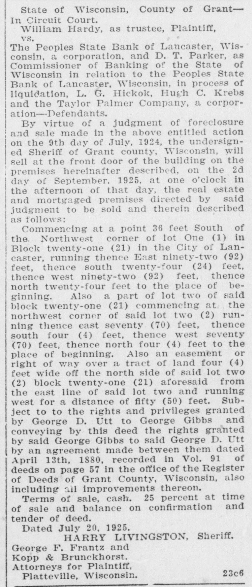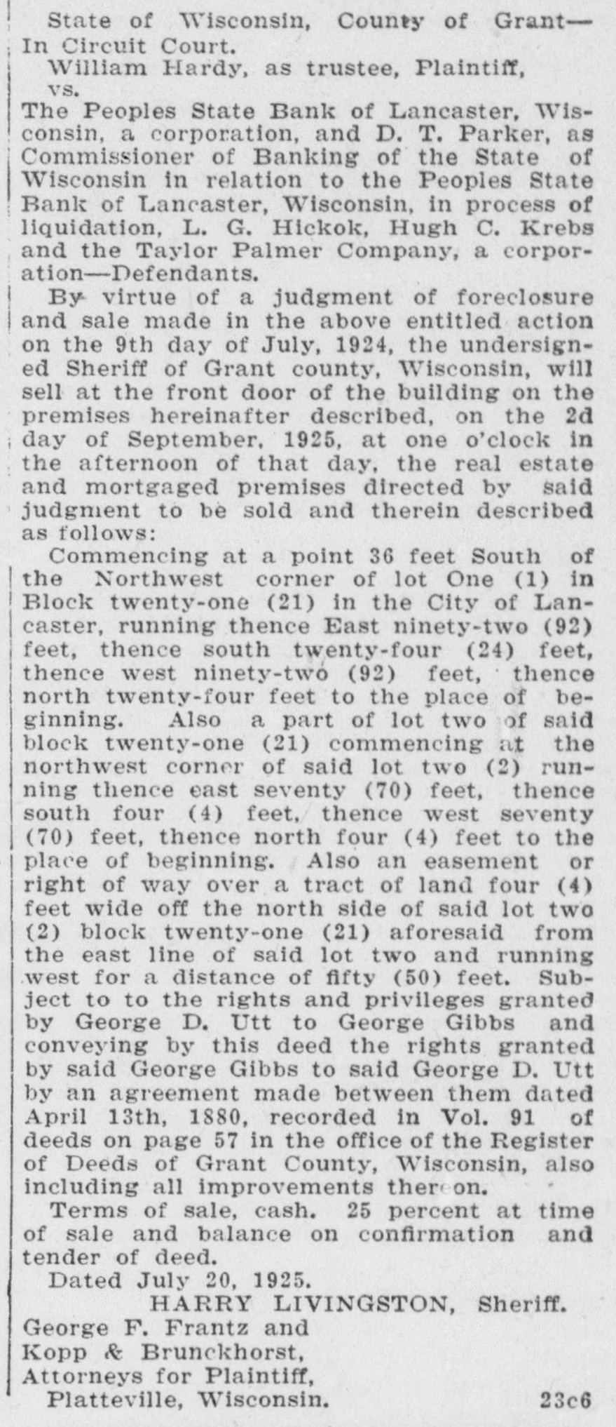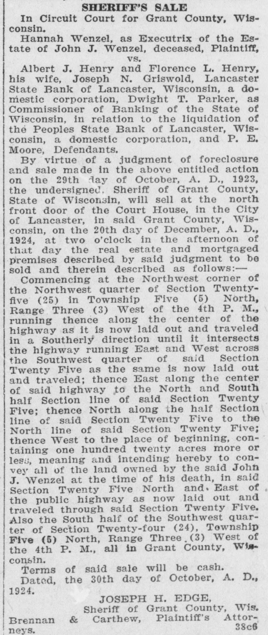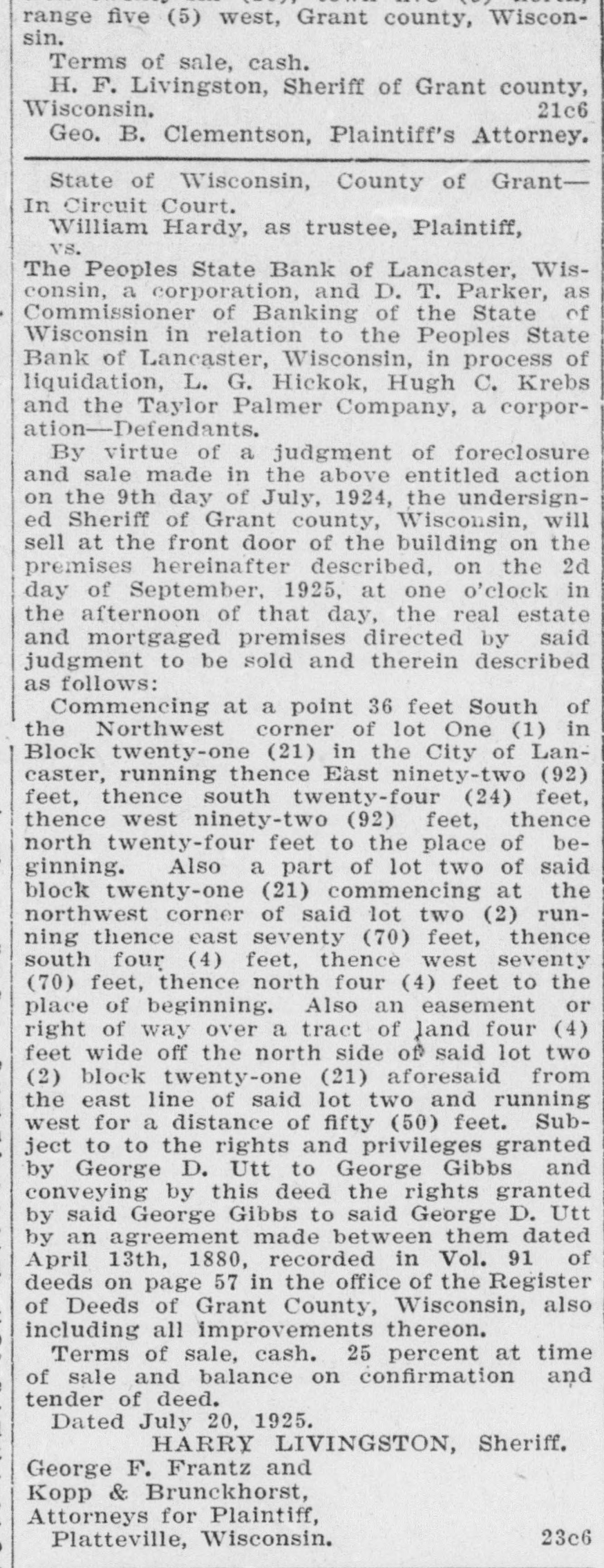 ACCUSED BANK OFFICERS READY 'TO FACE MUSIC' Justice to Move Swiftly in Local Case. PROGRESS IN PEOPLES STATE BANK TANGLE 4 p. m. Tuesday-C. H. Basford arrested on larceny charge. * 3 1. m. Wednesday-L. A. Clark * and J. Harold Pugh return to Lancaster with District Attorney Geo. B. Clementson. * * 8 a. m. Wednesday-Pugh and Clark arrested on embezzlement charge. * * 1 p. m. Friday-C. H. Basford held to now pending term of circuit court on charge of embezzlement. Bail set at $10,000. Bail provided by Adolph Vesperman, * So. Lancaster farmer. * 3 p. m. Friday-Pugh and Clark * held to now pending term of * * circuit court on embezzlement charge. Bail set at $10,000. Pugh bail provided by S. W. Doolittie. Clark bail provided by Lambert Groenier and Jos. Godfrey. * * 9 a. m. Monday-Pugh and Clark enter People State Bank to assist Examiner Edwards in * straightening out tangle. * * The above is a concise statement of the events of the past week surrounding the Peoples State Bank suspension. District Attorney Clementson in his statement elsewhere, fully covers the methods used in getting in touch with Pugh and Clark and their return to Lancaster. The two defendants who summarily ran away Saturday a week ago returned with Mr. Clementson Wednesday morning. They remained in the sheriff's custody until Saturday when bail was provided for them. While all three cases are set for the present session of court, on this week, it is considered unlikely that the Basford case will go to trial at once although Special Prosecutor Carthew expresses a willingness to try the case immediately. S. H. Taylor has been retained as counsel by Mr. Basford. It is said on good authority that both Pugh and Clark see the folly of their leaving Lancaster. They decline to state where they spent their time in Chicago. The boys got in touch with Mr. Clementson Tuesday through a Chicago intermediary. Mr. Clementson and Sheriff Edge went to Chicago that night and after some negotiation next day the district attorney saw the men personally. Touching letters from home asking both young men to come back and "face the music" no doubt had a good deal to do with their final determination to come peaceably. Examiner Edwards has made no exact statement as to the probable amount of defalcations and any statement made as to a specific shortage is untrue. Mr. Edwards says it will take some time to get at the bottom and determine the true losses whether large or small. The authorities are not optimistic as to there being no defalcations. In fact the opposite is inferred. Mr. Edwards has no opinion to express at present as to an actual condition of affairs in the bank. Pugh and Clark by their willingness to come back have helped matters appreciably and their offer to enter the bank and assist the exam-