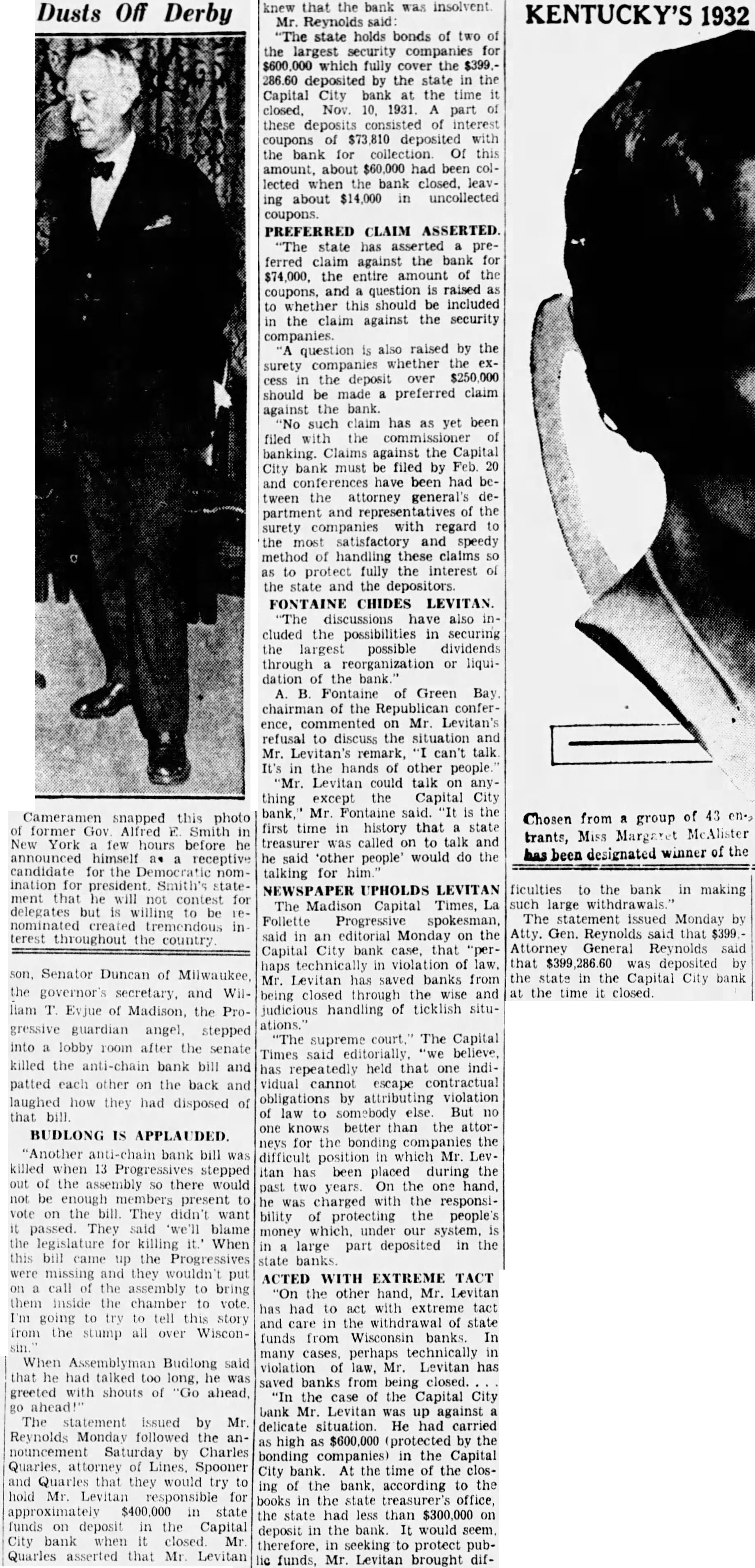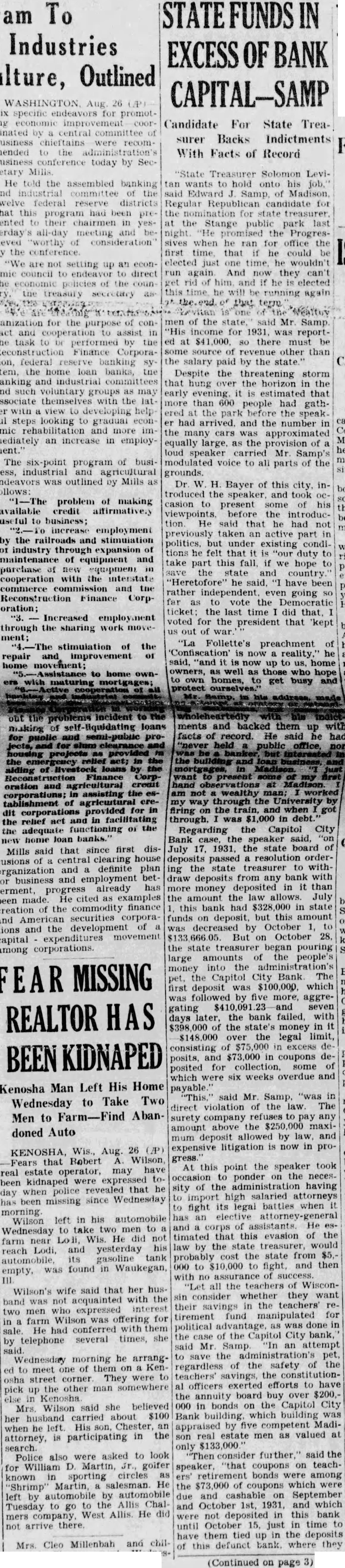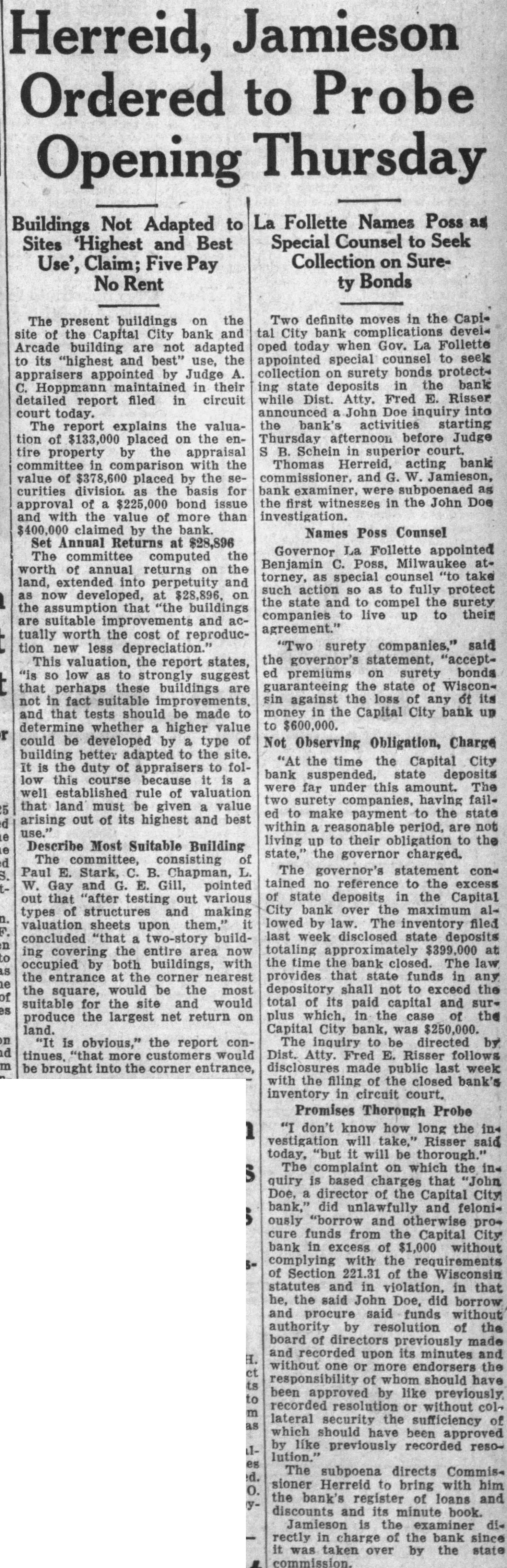 Stoughton body of STOUGHTON. Company's Stoughton Monday salesman bed Hotel dead his found to Anderson's Monday undertaking rooms after Coroner Campbell of had pronatural causes. due to nounced funeral arrangements other made pending the expected arrival on the dead man's Tuesday Johnson. from Bartelsville, Okla. Resumes Rehearsals having enjoyed vacation from November the Stoughcity resumed practicing Monday evening in for the coming open air concert which rule opens carly in June. By starting the period this early to have its repertoire the band expects of pretty well mastered by being held June. The rehearsals are the city hall. Miss Selma Burull spent Sunday in Madison with her niece. Miss Marion Burull employed the office of the Guardian Life Insurance company. Wilson Sun Prairie A. Wilson, who recently resigned manager of the Britting & Hixon Lumber Co.'s local yard. has accepted Chase Bros. lumber and fuel yard Sun Prairie. Mr. Wilson Sun Sunday and entered his new duties Monday. His family will join him after time. Baby Son Dies baby was born Mr. and Mrs. Alvin Everson the local hospital Sunday evening but the infant lived only half hour. It was Mr. and Mrs. an Everson's first child. Welcome Daughter From Edgerton word of the birth baby daughter to Mr. and Mrs. Gordon Voog that city which occurred last Friday at the Memorial hospital. Mrs. Voog was formerly Miss Elcanor Hansen and the younger daughter and Mrs. Elius Hansen this commuinty. This Mr. and Voog's first baby and also Mr. Mrs. first grandchild. Begins Collection City Treasurer Larson went to Monday after the tax receipt books and all set relieve taxpayers of shekels are due the city, Before went to he few payments for which he to be replaced later by the regular forms. Receipt No. made Severt Hellekve. 011 Giles night officer Peter Lee of Lake received No. cn his Turner Park cript No. was made out to John Park Cars Collide Bertram of Mr. and Borrud. his Pontiac Mrs. roadster badly late Saturday evening when Willis Orvold. Utica, also driving Pontiac roadster, crashed into him as was turning into the driveway at the Borrud home just of town Orvold and presumed the latter did the to the left to ahead of him swing car enter Both left fenders. the running board and part the hood Mr. Borrud's car were wrecked and the front axic Mr. Orvold's was damaged. suffer quite said. did not much damage but the front axle was Messrs. and Mmes. Gustav Torgeson, motored and John Quam, down Sunday Torgeson gradually from the effects with his the that Sunday before on Monroe Christmas. Collar Bone Breaks Rockford who man from A young companions was number terrior skating on Lake Kegonsa Sunday forefall in which he bad noon, broke his collarbone. He was Business taken to the Stoughton clinic where his to Drs. Horn FURNACE attended by injury 2336. and Schoenbeck. Celebrates 88th Birthday MACK'S of Sarah The 88th Birthday Rosendahl. old time of Stoughterns today, celewhich occurred brated ton, Sunday with family gathering PAINTING Dunkirk ave., at home 734 the which were present four of her five children and few old friends. din- KARL afternoon was served and the 8219 pleasantly spent in social chat. Besides the son and daughter. Oscar and ChrisLET ME tine live mother. Miss bish: Geda Rosendahl. superintendent of nurses at the hosattended the gather- ASHES pital in Mrs. Sven Grease did cleaned Rosendahl. ing Madison. Miss Rosendahl Monday afternoon. returned Chicago BADGER Waterworks Supt. S. Snyder, who has been under the weather for some bed at his now confined days. is and is reportPrairie home on with pneumonia. be threatened to Interview With M. Dahl of section the page New York Times last Sunday's Gerhard M. with Stoughton resident. Dahl. old time sentative which was written by Woolf. With the write-up is picture of Mr. Dahl. Few Stoughton people safe to say are aware that our former townsman second son of the late Rev. Times. and Mrs. Dahl, now practically the head what the Times article designates greatest munithe world" for in Experienced cipal system he the board directors of the Transit and the board the Interborough Rapid Transit. the big largest systems. Mr. Dahl graduate of the U. W. and 30 or more Help left Stoughton perhaps years Druliner years' training and MODERN Wisconsin corPARTLY Motors. DUPLEX perience office Write Commercial Ave 8:30 to poration. every day and Defendant. The Capital 2336. TAKE NOTICE. That and 4th Mon- THE TORCH PLEASE every 2nd EXPERIENCED. RESPONSIBLE STENOGdesires 59 and bookkeeper Housekeeping Rooms the exery Sunday rapher. cashier which judgment not Motors. position that notice Write Box SEE THESE TWO ATTRACTIVE ROOMS. other things provides Secretary. Excellent among Gerry. Rent creditors of Heat. light. be given Telephone The Capital Times. Your Ad in the hands of The Times Want Ad Robot is 3848 days. by publication. poration OF CHILD DURTAKE CARE said WANT TO creditors a torch, guiding and lighting the way into homes, time home. TWO and Second ing day to and telSteam light. gas the Visiting until the solution of your wants is found. The Times each NEEDS WORK OF 2217. WANTS Laundry privileges. filed day Knights cordially invited to attend all WOMAN ephone. which within any kind. Want Ad Robot works wonders. 1931. being LIGHT HOUSEFRONT ROOMS FOR thereof. and default Extrom. Commander 1314 sonable Geo. WOMAN WANTS WORK BY DAY OR Everything furnished. keeping. defendant corporaHenwood. Recorder. creditors the HOUR. Washington from benefits shall precluded tion the judgment made in this action LODGE NO. LIGHT HOUSEKEEPING SEVERAL ADDITIONAL DELIGHTFUL WILL TAKE Call Badger 2200 and Put Him to Stated held the First light. such Strictly modern. students high schools university hereinafter made and Third Thursdays each month Call heat furnished. No. 4th St. 6220. tribution coaching in Now desire the Temple Freemasonry. Corner pursuant ROOMS. NEAR this 22nd day of Wisconsin and East Johnson HOUSEKEEPING Da