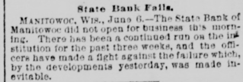 The State Bank of Manitowoc did not open for business this morning. ... officers have made a fight against the failure which by developments yesterday was made inevitable.