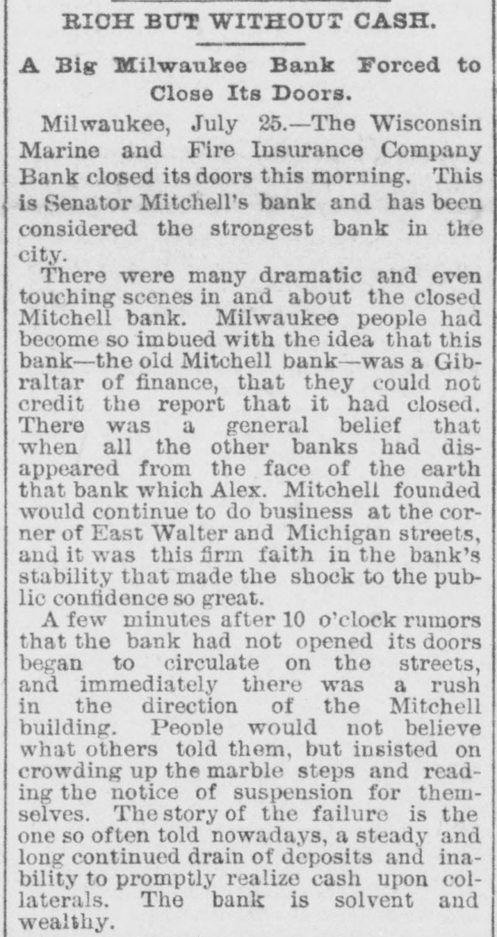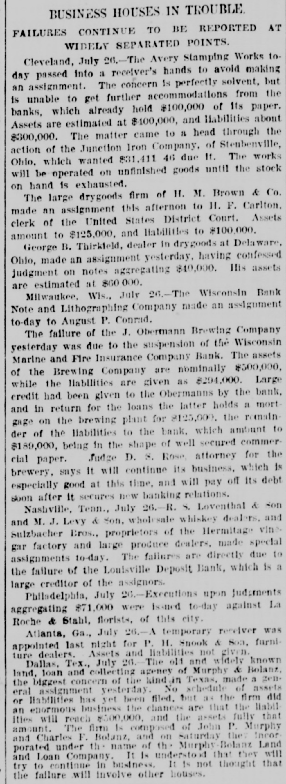 LATER NEWS. THE silver men's meeting at the Fifth Avenue Hotel, New York City, ended in 3 boisterous row. Speeches were interrupted, and a war of words caused for two hours. The electric lights were finally turned out amid the utmost confusion. The delegates to the Chicago Convention, however, were appointed. THE Erie Railway Was placed in the hands of John King and J. G. McCullough as Receivers. the appointment being made by Judge Lacombe, of the United States Circuit Court, New York City. on the application of Trenor L. Park, a holder of first and second mortgage bonds. He stated in his complaint that the $6,000,000 of floating debt embarrased the company so that it was in danger of defaulting on its bonds, and many creditors threatened actions. THE Wisconsin Marine and Fire Insurance Company Bank of Milwaukee, Wis., failed ; two banks in Indianapolis, Ind., and three in Louisville, Ky., also closed their doors. GENERAL ST. CLAIR, World's Fair Commissioner from West Virginia, tried to enter the World's Fair grounds without his badge and was badly bruised in an encounter with three gatemen. COMPTROLLER ECKLES received a dispatch stating that Cashier Lomax, of the First National Bank of Vernon, Texas, which failed a few days before, had committed suicide by shooting bimself. FIFTY deaths daily are reported in St. Louis, Senegal. The disease also prevails in Naples and vicinity, in Italy, and in Smyrna, Asia Minor. M. PAVIE, the French Minister-Resident, left Bangkok; Sir Edward Grey, the Parliamentary Secretary of the British Foreign Office, assured the House of Commons that England would protect her subjects in Siam. OFFICERS from the Russian man-of-war Nicholai I, visited Camp Werts, Sea Girt, where the New Jersey National Guard was encamped. SEVERE electric storms did damage in various places in the New England and Middle States. One man was killed and several injured at Coney Island, New York, a man was killed on Staten Island, and a man severely injured at Nyack, by lightning. AN Italian, Daniel Arata, a saloon keeper, was taken from the jail at Denver, Col., by a mob of citizens estimated to number flfteen thousand persons and hanged to the nearest tree, where his body was riddled with bullets. Arata had killed an old Grand Army veteran named Benjamin C. Lightfoot. MAGGIE TAYLOR, Lulu Johnson, Marian Smith and Nellie Patrick were drowned in the Wicomico River, near Patrick's Landing, Md., by the capsizing of a sailboat. THE Navy Department has transferred to Admiral Kaznakoff, commanding the Russian fleet now in American waters, the electric launch or gig recently built for the armored cruiser New York. POSTMASTER DAYTON visited Washington to make an effort to secure an additional allowance for the conduct of the New York Postoffice. After a two-hour conference with First Assistant Postmaster-General Jones he succeeded in obtaining an allowance of $50,700. THE Spanish steamer San Juan, loaded with kerosene for Amoy and Manila, was destroyed off Hony Kong by fire. Out of 250 people on board, only twenty-nine were saved. A NEW treaty of annexation to the United States has been prepared by the Provisional Government in Hawaii. THE steamship Pearl was run into and sunk by an unknown steamship off the Irish coast. Seven people were drowned. THE revolutionists of Nicaragua have captured the city of Managua, the capital of the Republic.