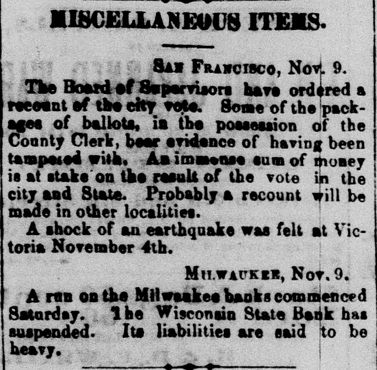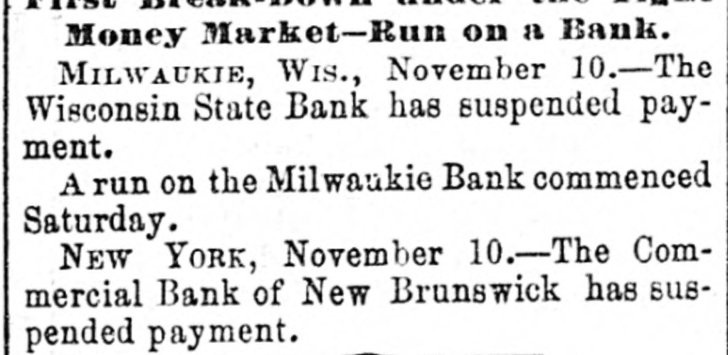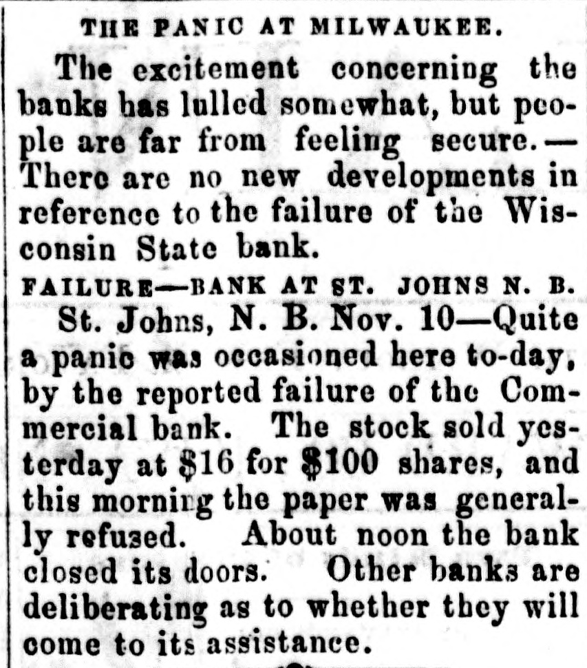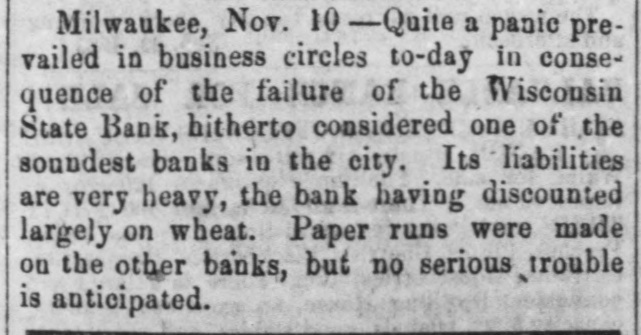 The Milwaukie Sentinel says: The Wisconsin State Bank affair is in a fair way of settlement. An arrangement has been made by which the smaller depositors are to be paid in full in a few days, while the larger ones will receive 80 per cent. cash, and the balance in a short time.