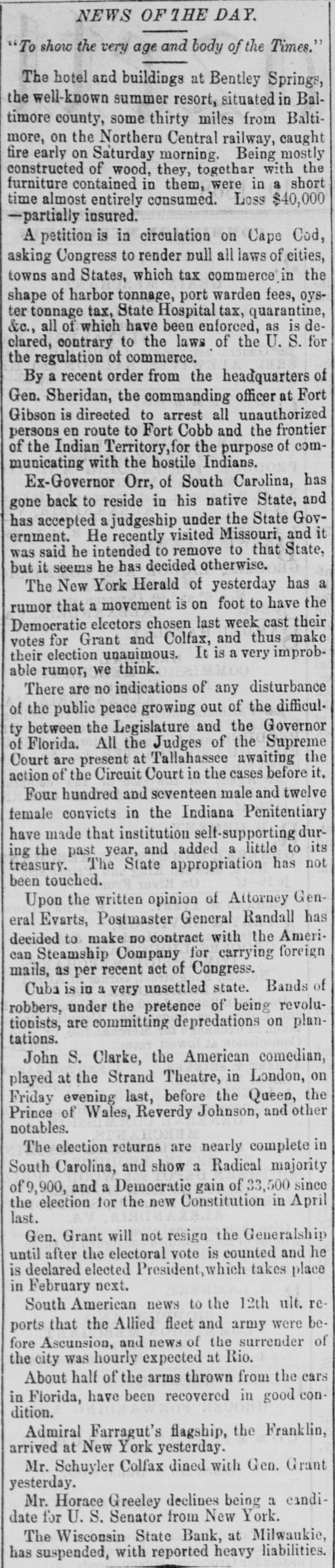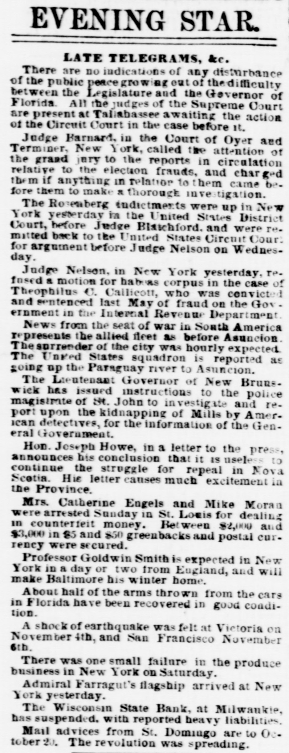 Petitions addressed to General Grant are being circulated asking that a lady be appointed post mistress at St. Louis.