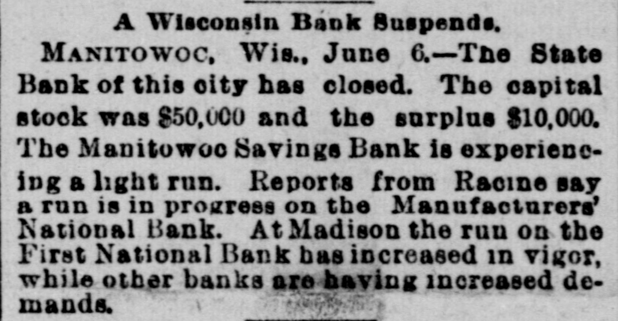 Part of the wider financial panic of early June 1893 with runs reported across Chicago, Wisconsin, and other Western banks.