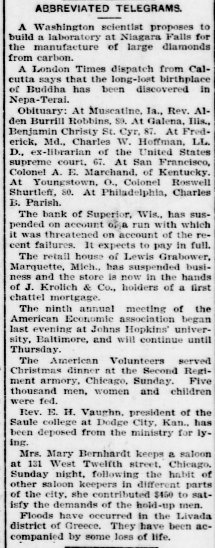 John Cherry committed suicide by taking morphine at Shelbyville, Ind., and William Ford dropped dead on the streets.