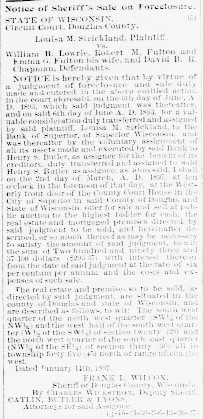 Dr. W. D. Flynn, ex-president of the Minnesota State Medical society, died at Redwood Falls.
