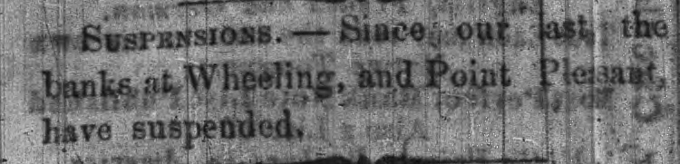xn # SUSPENSIONS. - Since our ast the banks at Wheeling, and Point Pleasant, C have suspended,