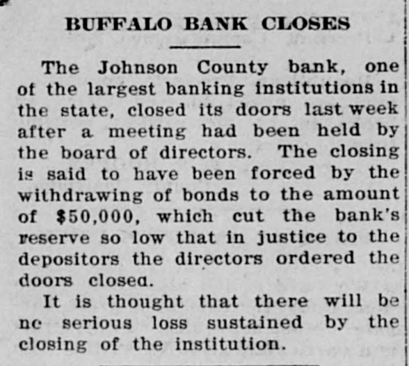 Judge Burgess appointed T. P. Hill, prominent Buffalo attorney, receiver for the Johnson County Bank of Buffalo, which closed its doors last month.