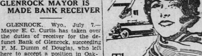 Mayor E. C. Curtis has taken over the duties of receiver for the defunct Bank of Glenrock, succeeding M. Dumm of Douglas, who left
