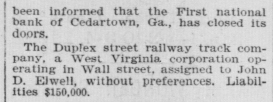 MINOR NEWS ITEMS. For the Week Ending July 18. The Bouton Foundry company in Chicago failed for $200,000. Yale is winner of the world's fair college baseball tournament. The First national bank of Cedartown, Ga., closed its doors. The 9th of September has been designated as Grand Army day at the world's fair. Osen Betts, a farmer living near ich, committed suicide by Hillsdale, hanging George Grandin left New York to walk to the world's fair. He carried no money with him. Patti Stone, the opera singer, died at the St. Louis home of her father, Maj George H. Stone. Bands of Mormons are at work in Virginia proselyting. They avow their belief in polygamy. Lick observatory astronomers claim the new comet is really two comets with two distinct tails. Ignoring a warning, Dan McCarthy attacked one Nethrow at Marysville, Ia., and was fatally shot. Robert Larkin, colored, was lynched at Ocala, Fla., for criminally assaulting Fannie Alexander, white. Workmen at Elwood, Ind., where factories have closed. were suffering for the necessaries of life. The business section of Luckey, O., was almost completely wiped out by fire, the loss being $100,000. John McConnell, morocco and cotton manufacturer in Philadelphia, failed for $200,000; assets, $100,000. Clement Miller and his wife and baby were fatally burned by the ex plosion of coal oil at Columbus, O. Sheriff Spradley, of Nacogdoches, Tex., killed his fifth man in Joel Good win. who had a murderous record. The private banking house of William Oberhauser in Peoria. Ill., closed its doors with liabilities of $60,422. Two oil tanks at Whiting, Ind., exploded and the Standard Oil company lost gallons of refined petroleum. John McGrath. leader of a notorious Chicago gang, has been sentenced to twenty-five years in prison for burglary. Rudolph won the Columbus handicap, worth $25,000, in a brilliant finish at the Washington park track in Chicago. Annie Morris has been masquerading as Frank Blunt for fourteen years. Arrest at Milwaukee revealed her identity. Dr. Henry C. W. Meyer, alleged poisoner and swindler of insurance com; panies, is now locked up in New York. Near Atchison, Kan., the Missouri river has begun eating away lands and is encroaching upon the railway roadbeds. The bank of Hay & Webb made a general assignment at Carmi, III., with liabilities of $176,000 and assets of $216,000. Glen house, a popular resort in the White mountains was destroyed by fire. entailing a loss of $160,000. Guests escaped. Richard P. Roughton and Frederick T. Rawlins, prominent eitizens of Sandersville, Ga., killed each other in a street duel. Warren Dean, a negro accused of assaulting a woman, was captured by a mob at Stone Creek, near Macon, Ga., and lynched. . Meredith Lewis, acquitted of the charge of murdering his wife, was lynched near Roseland, La., by unknown persons. William J. Christie, stage manager of the opera house at Elgin, Ill., was overcome by heat and died from the prostration ensuing. In a runaway at Thomasboro, III., two young sons of William Seymour were so injured that they died soon after the accident. The council of administration has decided not to cooperate with the plan of the railroads to bring all western newspaper men and their wives to the world's fair free. Annie Geary, aged 17. and Mary Schireber, aged 5, were burned to death at their home in Port Clinton, O., by an explosion of gasoline. A train ran off the track and went over a high precipice near Bilboa, Spain, and six persons were killed and thirty seriously injured. A man named Segerman and his son, aged about 13 years, were found murdered 4 miles from Wharton, O T. Their pockets were rifled. S N. Dussenberre, cashier of the suspended bank at Puyallup, Wash., was arrested on a charge of embezzling $41,000 of the bank's funds. Lizzie Byram, aged 19 years, daughter of A J Byram, of Newark. N. J., died at Asbury Park of hydrophobia, the result of a bite from a pet dog. George Pond, aged 24: Albert But teroux. aged 16, and Willie Clawson, aged 12. were drowned while bathing in the bay at Galveston, Tex. At a disreputable resort in the City