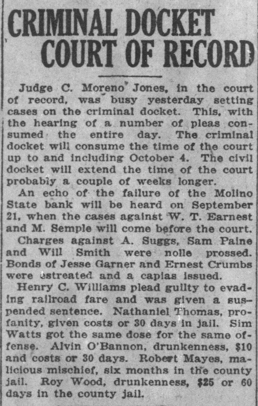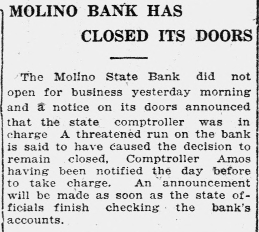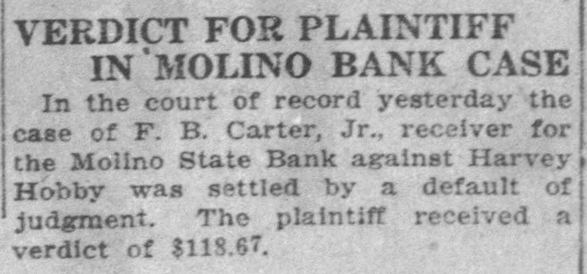 Receiver of Molino State Bank Institutes Several Suits for Payment of Notes.