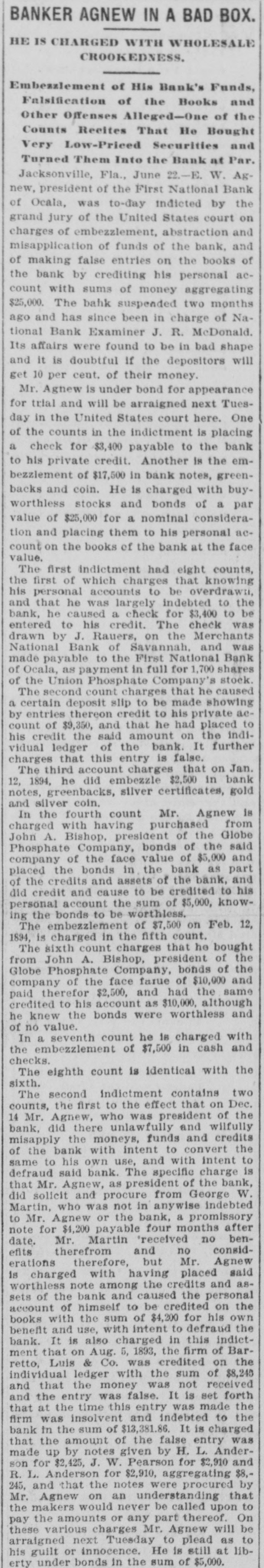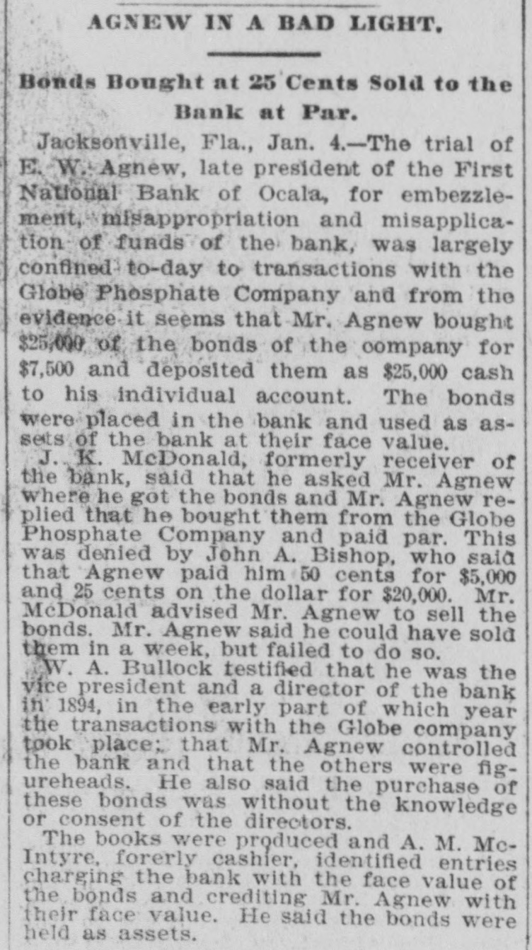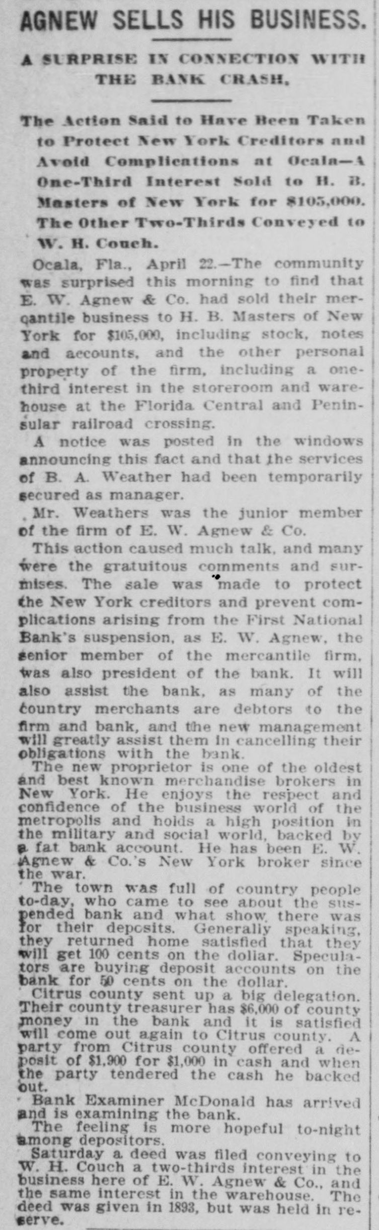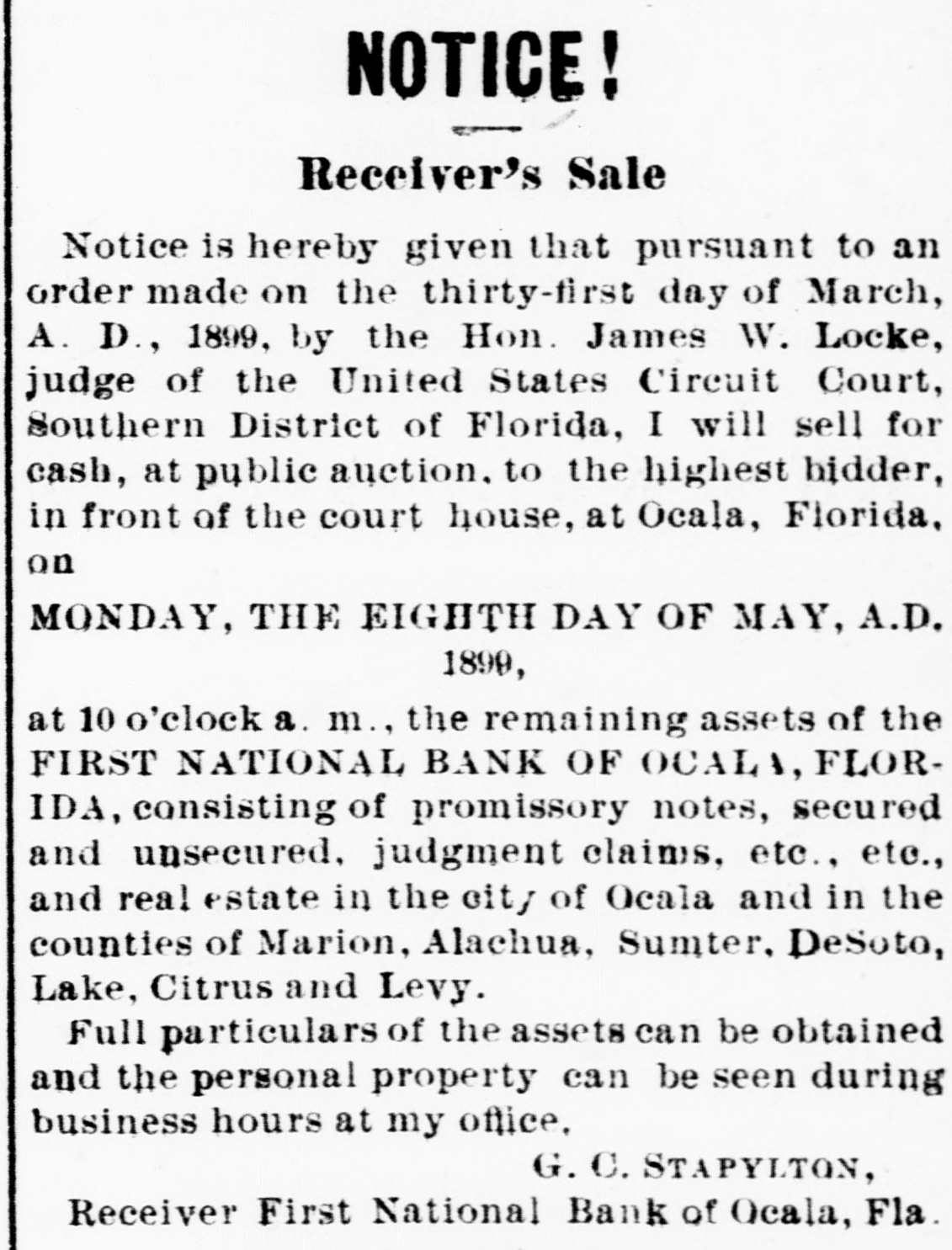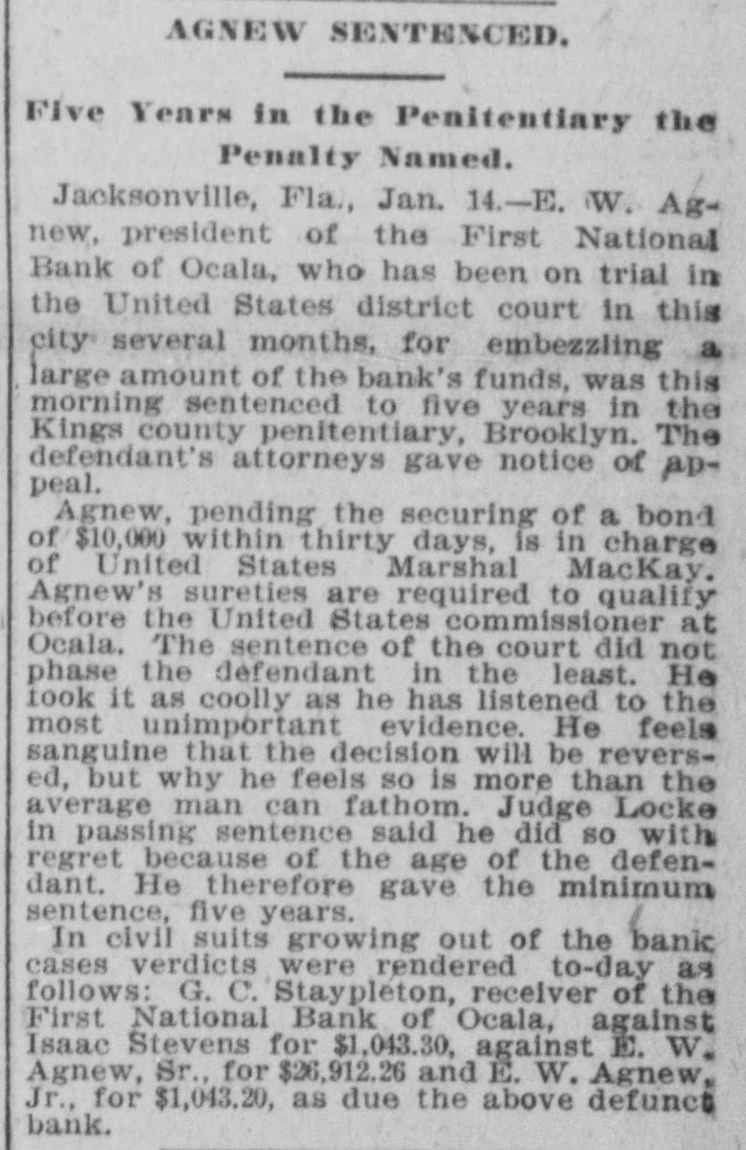 THE First national bank of Ocala, Fla., closed it doors.