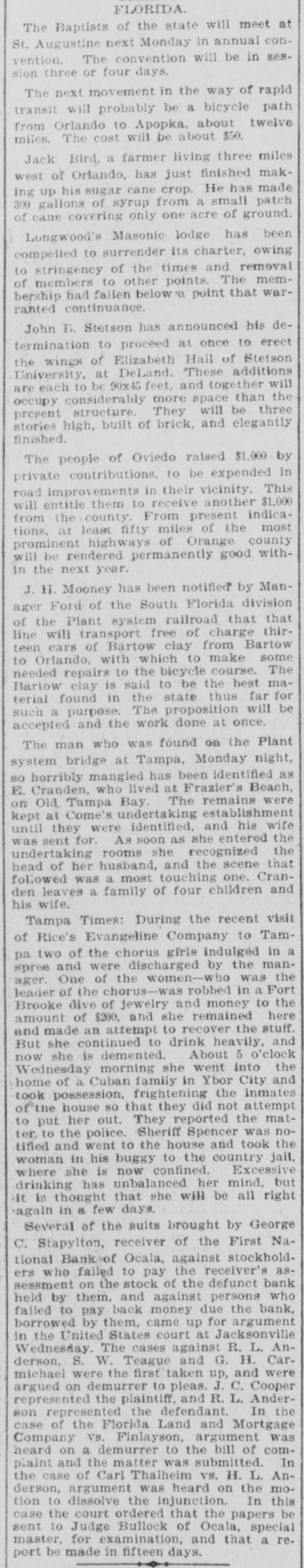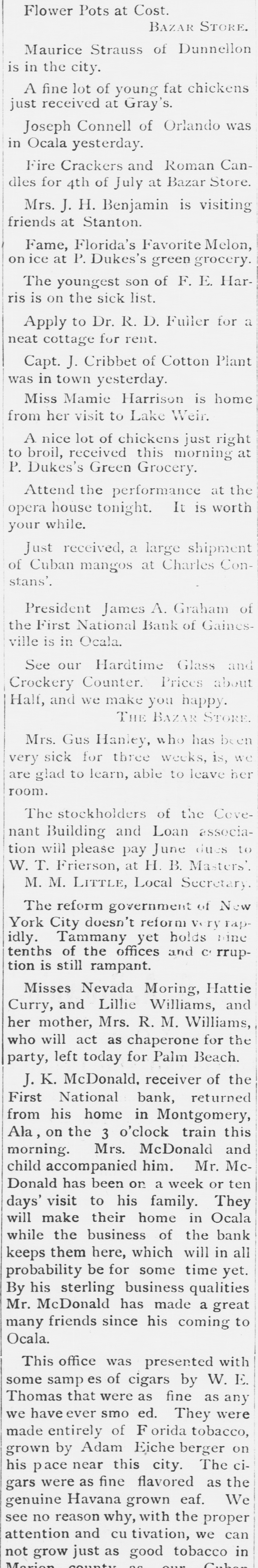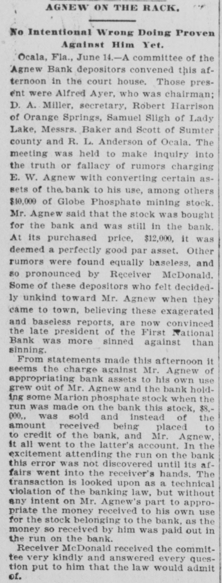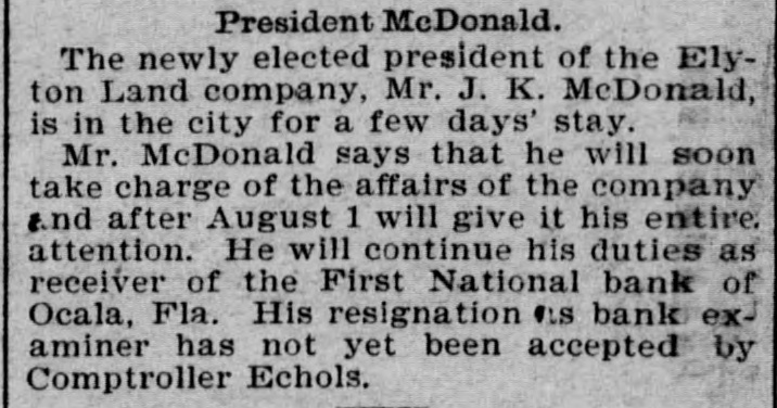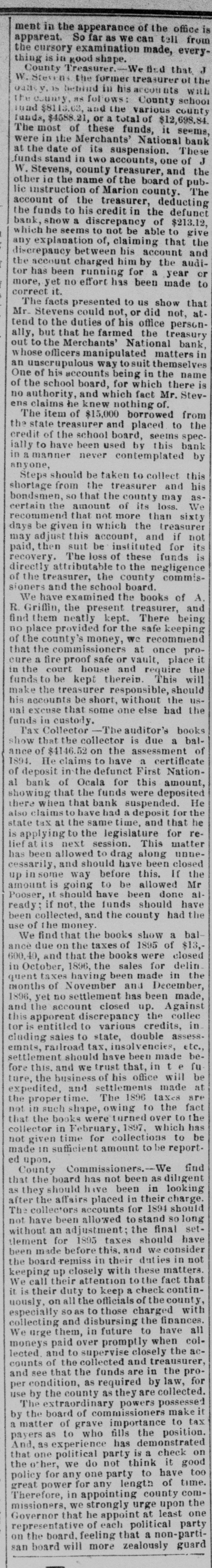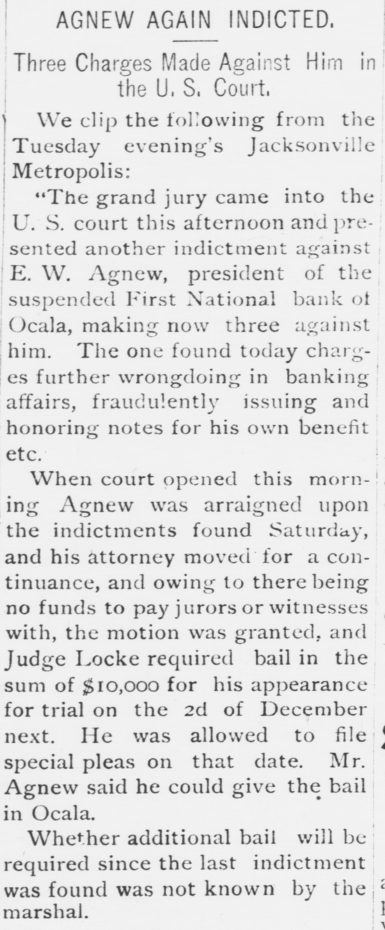 THE First national bank of Ocala, Fla., closed it doors.