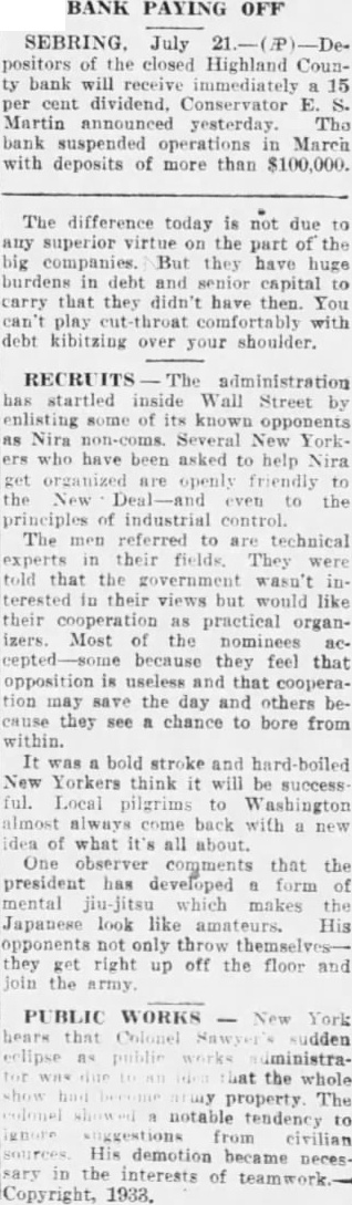SEBRING. July closed Highland bank immediately Martin yesterday March deposits more than $100,000.
