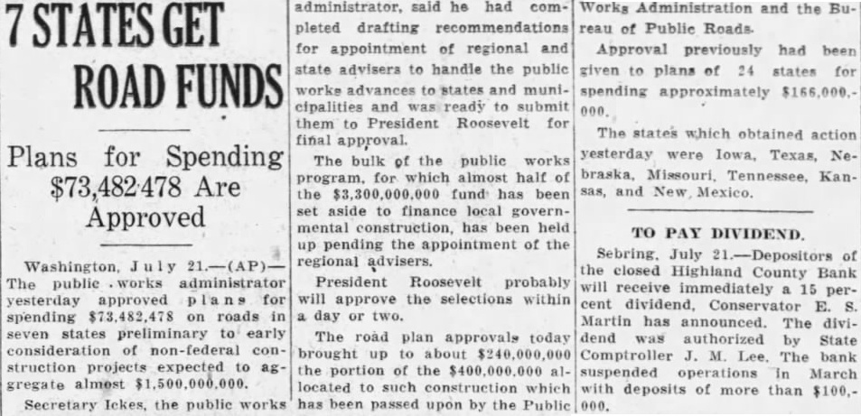 Works Administration and the Bureau of Public Roads. Approval previously had been given to plans of 24 states for spending approximately