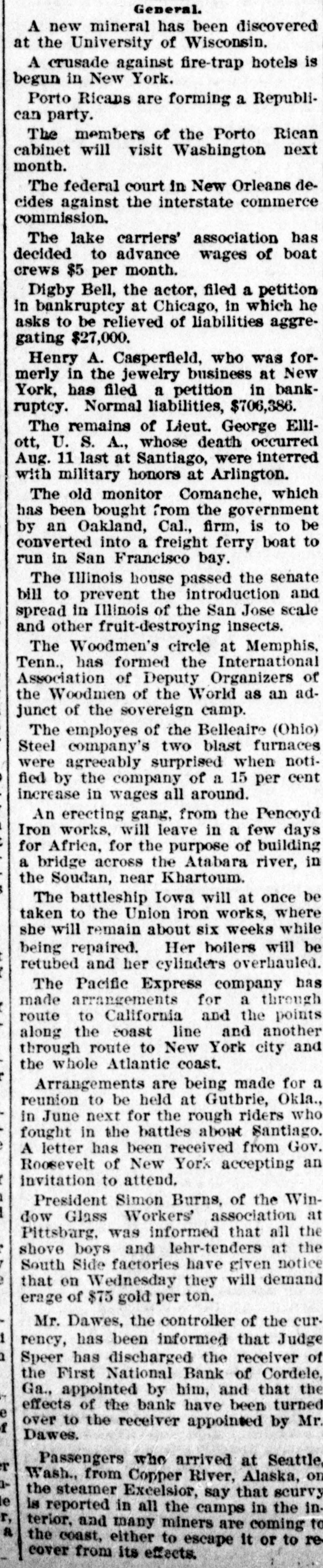 The remains of Lieut. George Elliott, U. S. A., whose death occurred Aug. 11 last at Santiago, were interred with military honors at Arlington.