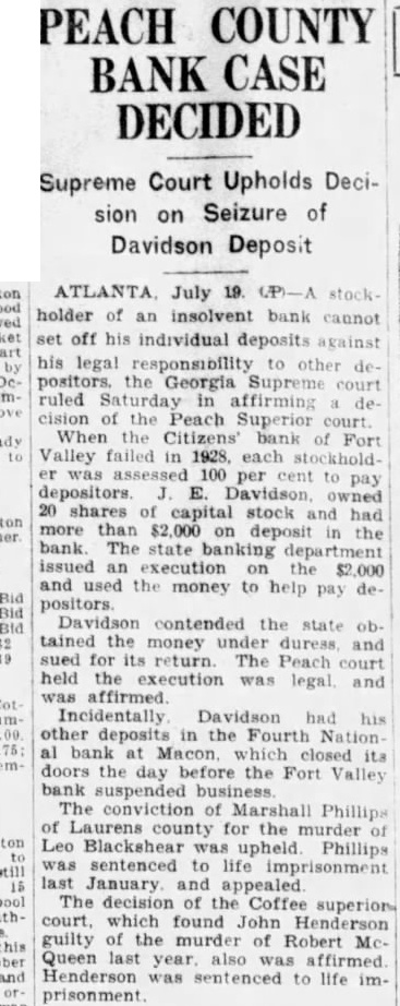 PEACH COUNTY BANK CASE DECIDED