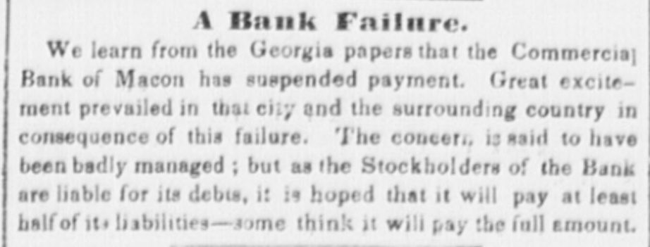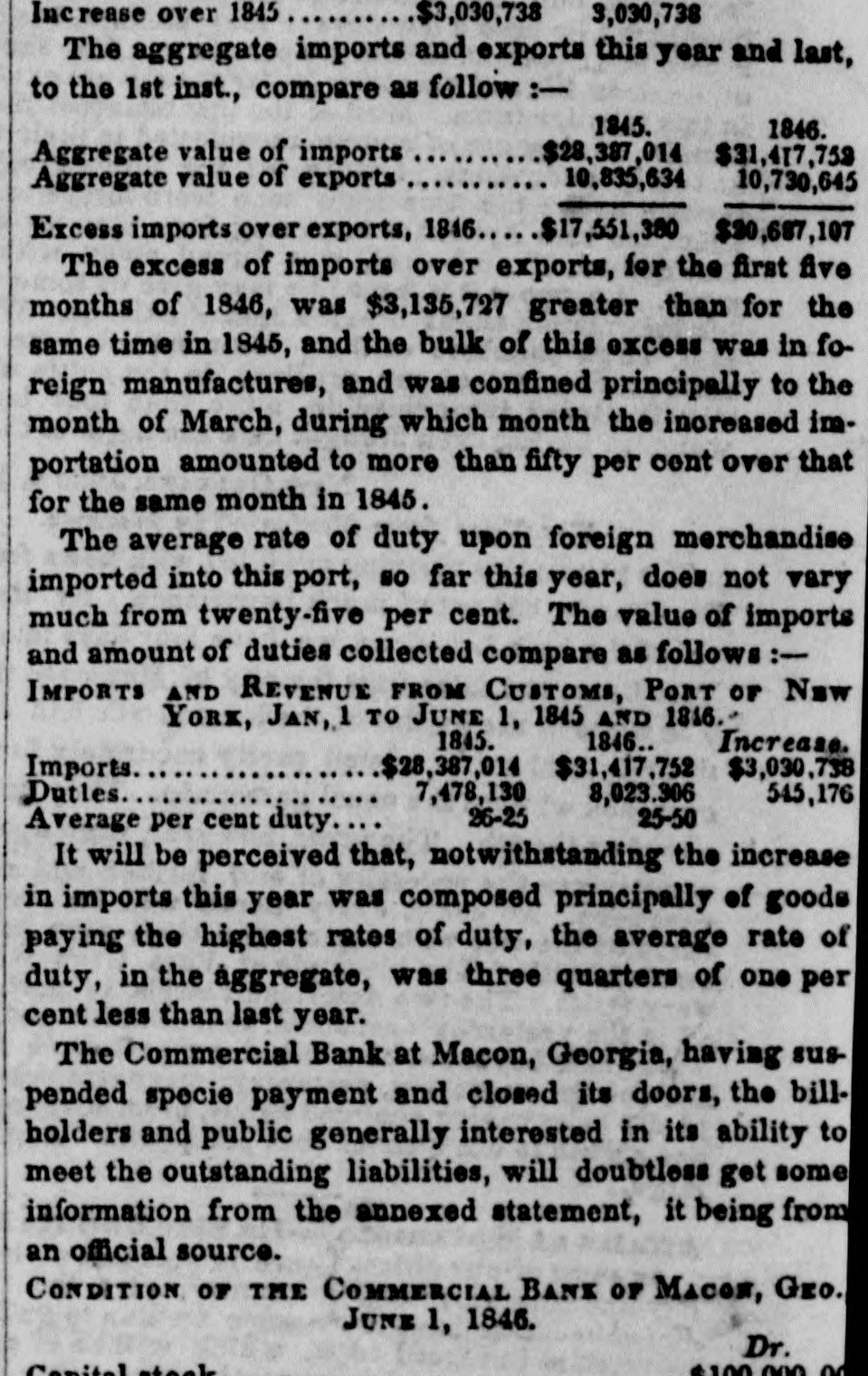 COMMERCIAL AND MONEY MATTERS. For sales of Stocks, &c. see fourth page. MONDAY. P. There is no new feature in the Stock Market, and the variations of prices are immaterial. The same in disposition to operate and the same absence of specula tion prevails as has been noticed during the last weekUntil some favorable change takes place in our foreign relations, much activity or large improvement in stocks can scarcely be looked for. In Exchanges there is nothing of importance 2 log. The rates are nominally as before. Starling 8@81. France 5324 The wants of the Government require morefunds theSouth and the discount of bills has driven the banks to ship specie. About $200,000 went last week.It will irrigate all the avenues of trade and soon return to os. Freights continue very active. Cotton is steady 7.16d, and the Great Britain has engaged some Ht Ad sterling. A ship has been taken up: 11c P tb. to go to Apalachicola and load for Havre or Liverpool. About 6.00 bbla Flour have been shipped to day At 3s sterling. The supply of first class short paper is not very large in market, and it is negotiated at 7@8 per centThere is a rather better feeling in money. and considera ble amount has been taken off the market today. The rates are a little easier, some negotiations of second class paper having been made at A per cent. which could not have been passed last week better than 2 per cent The receipts of the Custom House last week were only $160,000. The Delaware and Hudson Canal Company have declared a semi-anuual dividend of eight per cent. pay able on the 8th inst On the 26th of May the Marine and Fire InsurSOCC Book of Savannah commenced checking on the Northern cities, at sight, at the reduced rate of half per cent. premium. Considerable excitement has been occasioned in Macon, Geo. and neighborhood, by the failure of the Commercial Bank of that place. A run was made upon It for one day and the next it stopped. The circulation is about $100.000. On the 15th April last, according to the official returns of the bank. the capital stock paid in was $100,000; notes in circulation 8145.336 making with other liabilities, the total indebtedness $279,979 The resources of the bank were, cash assets. consisting of specie. bills of other banks, checks, &c. $72,123; bills of exchange. $110,457; banking house, notes and other evidences of debt. $86,098. If the winding up of the bank is bonestly done, it is thought the circulation can be all paid. Moreover, the stockholders are personally liable for the bills of the bank. It is stated that most of the directors deny being stockholders. The Committee on Railroads in the Connecticut Legislature. ou the resolutions of the New-York Legis lature authorizing the extension of the New-York and New Haven Railroad, reported resolutions accepting the provisions of the New York Legislature and extending the time for expending $100,000 on the road two years addition-resolutions passed And report accepted. Private letters from New-Orleads speak more encouragingly of the position of monetary atfairs there, and express the belief that the crisis has been passed The newspayer accounts are still bad. The Commercial Times says: There has been less demand for money during the pastlew days, but the condition of the market has not experienced any senable improvement The effect of the war news Ht the North having been less disastrous 1040 was anticipated, has led to a more liberal course of action on the part of the backs. and they have extended their discounts for the moment as far as they deem prudept. Unton tunately. however. this condition of affairs to, to some extent, beyond the reach of these institutions, be in the absence of any facilities for shipping, the stocks of produce have accumulated to such an enormousextent. MR to preclude the possibility of sustaining edgagements predicated thereon-at R value. exceeding in many instances. the present market rates by some twenty to fifty per cent. "The market for Texas Securities remains in the same quantisfactory state previously recorded. Since decline has taken amounts are for sale on the The following sales come our Red Backs at 11c; at finding our knowledge-$100 last buyers. H further pressing have market place, $20 and 000 without of to do. large 101c; and $10,000 at 9jc. We have not heard any transactions in bonds. The Legislature of Texas being on the eve of adjowerment, without having taken any action to provide. in some shape, for the payment of the State Debt. bas weakened the faith of the holders ot these liabilities to such an extent. as to induce many to throw large amounts in the market, for which there are the present moment. few or DO purchasers. There has been fair demand both for Foreign and Domestic Exchange during the past three days, and the comparatively amail amount offering has enabled drawers. in nome instances. to obtain rates A shade better. We quote Sterling is 73 per cent. prem Francs 5f.40@5t.45; Bills on New York at 30 days 27@31 per cent. discount; Checks and Short Sight 1@13 per cent. discount." The loan of $200,000 needed by the State had been ta. ken by the banks.