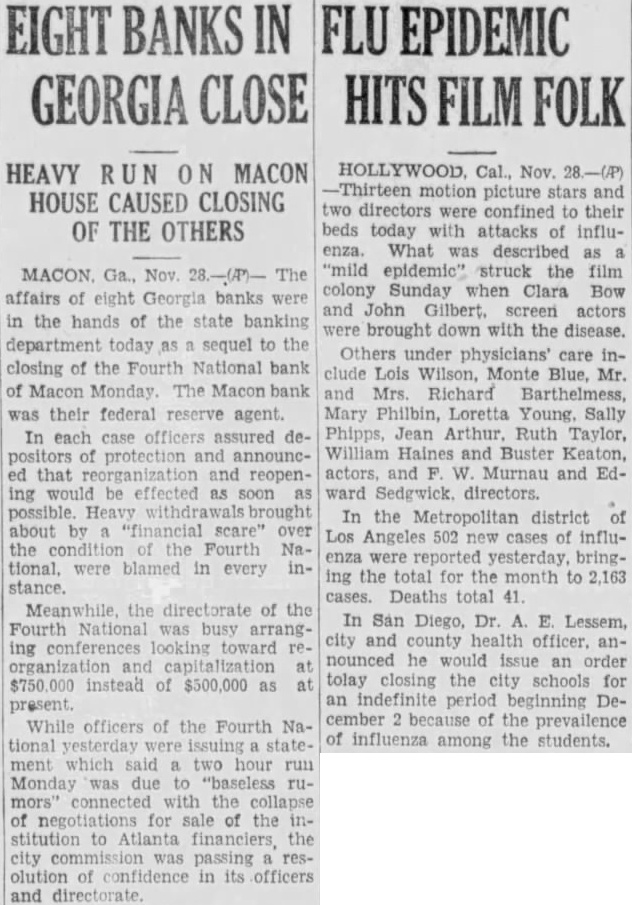 EIGHT BANKS IN FLU EPIDEMIC GEORGIA CLOSE HITS FILM FOLK