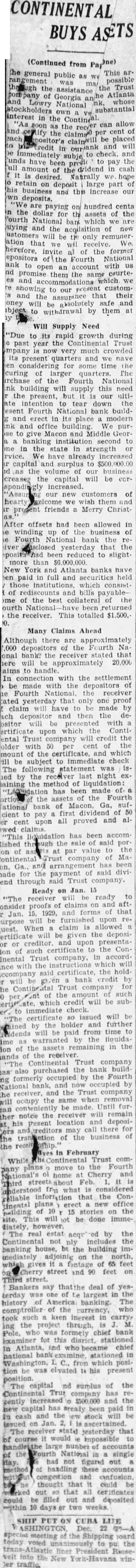 (Continued from Pag One) the general This public as possible the the Trust assistance pany of Atlanta Georgia Lowry whose National stockholders substantial can allow soon as the cent of the per positor's be placed to and funds to pay the been full of the dvidend in cash retain on deposit large part of business and the our wn deposits. paying on hundred cents the dollar for the assets of the Fourth National bank which we are uying and the acquisition of new ustomers will be the only ation that we will receive. We herefore, invite al of the former epositors Fourth National to open an account with us promise them the same courteaccommodations which we to our and the that their will be absolutely safe and withdrawal by them at