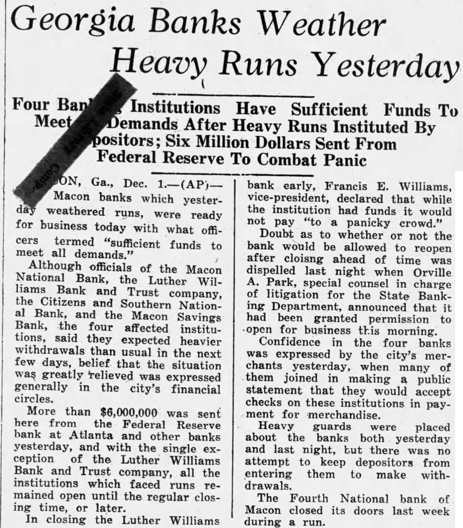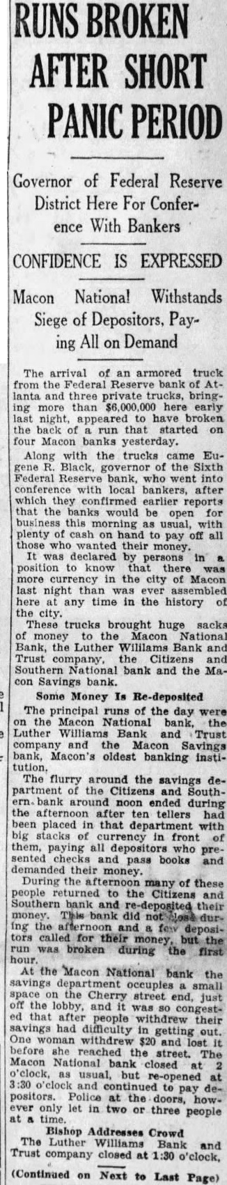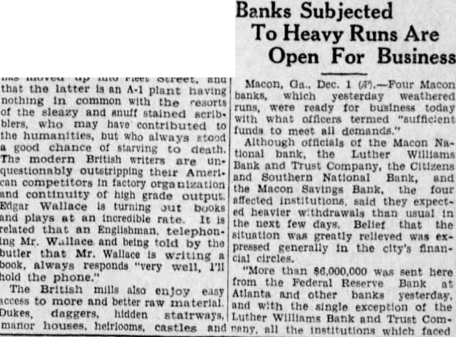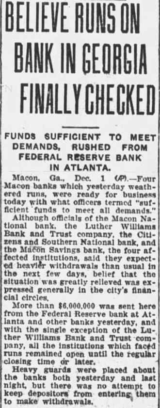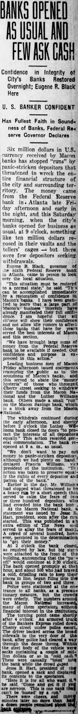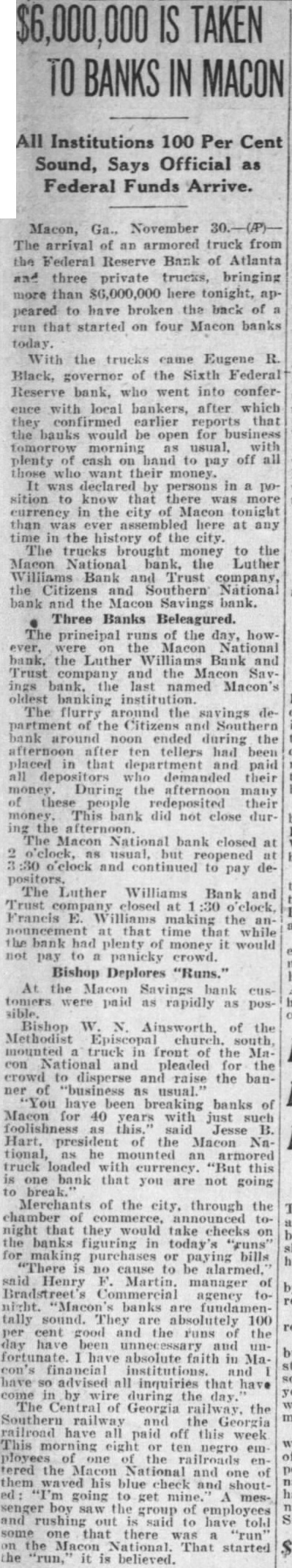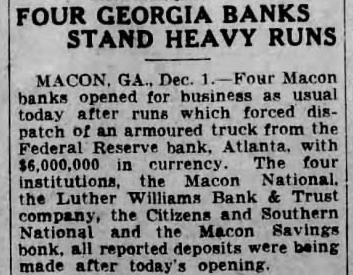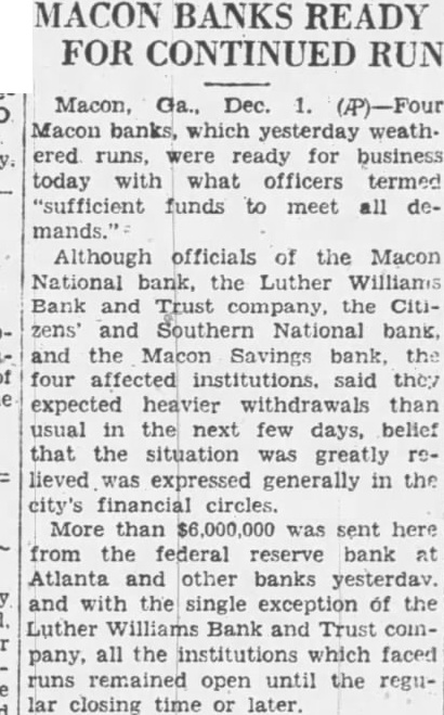 MACON, Ga., Dec. fourin currency. Macon banks for business as The four institutions, the Macon opened usual today after Luther Bank andl runs that forced the dispatch of Company, Citizens and Souththe dispatch of armored truckern National Bank, and the Macon from the Sixth Federal Reserve BankSavings Bank, reported deposits Atlanta with six million dollarsafter today opening.