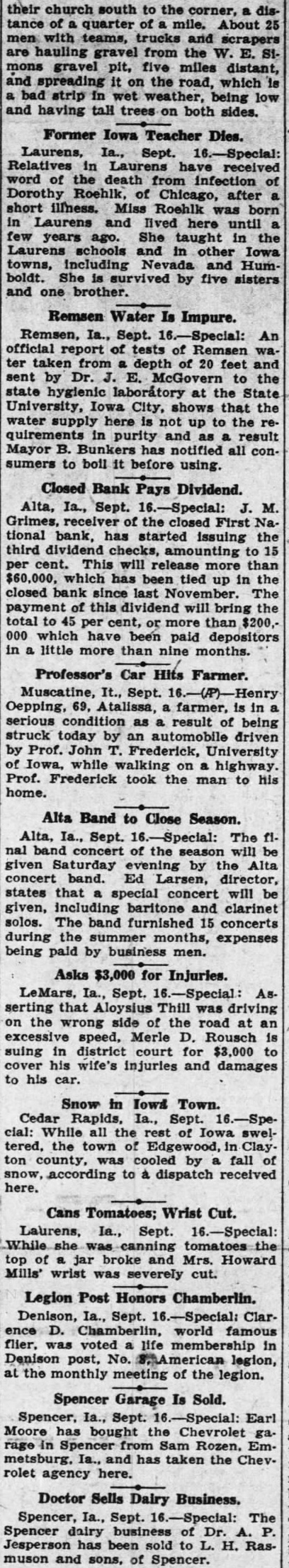 Missouri Valley, Ia., July cial: Mrs. Martenus Skakson, 54, had been in good health, complained husband that she was feeling III and would go out on the porch to get breath fresh few ments later he heard her fall and found her died and half later. Heart disease was given as the cause.