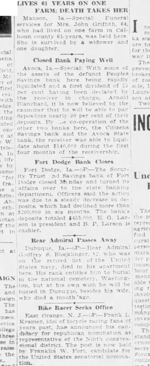 Fort Dodge Bank Closes