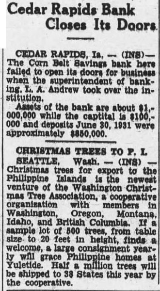 Postpone Building Sale. Sale the building occupied by the Corn Belt bank comes up for hearing in Judge Moffit court at 9 a.m. tomorrow The hearing was scheduled for today but was continued the Palumbo Brothers, bidders, whose attorney was out the Application for of the property was made April 20 by L. A. Andrew. receiver of the bank. The receiver said $22,000 was the best offer he had received for the building. made Tschirgi, and he asked permission to sell it at that figure This morning, however. Palumbo Brothers filed an application asking permission to bid on the structure The building at $22 by the appraisers. Arthur Hurtt Horace G. Hedges and Walton A. Keller.